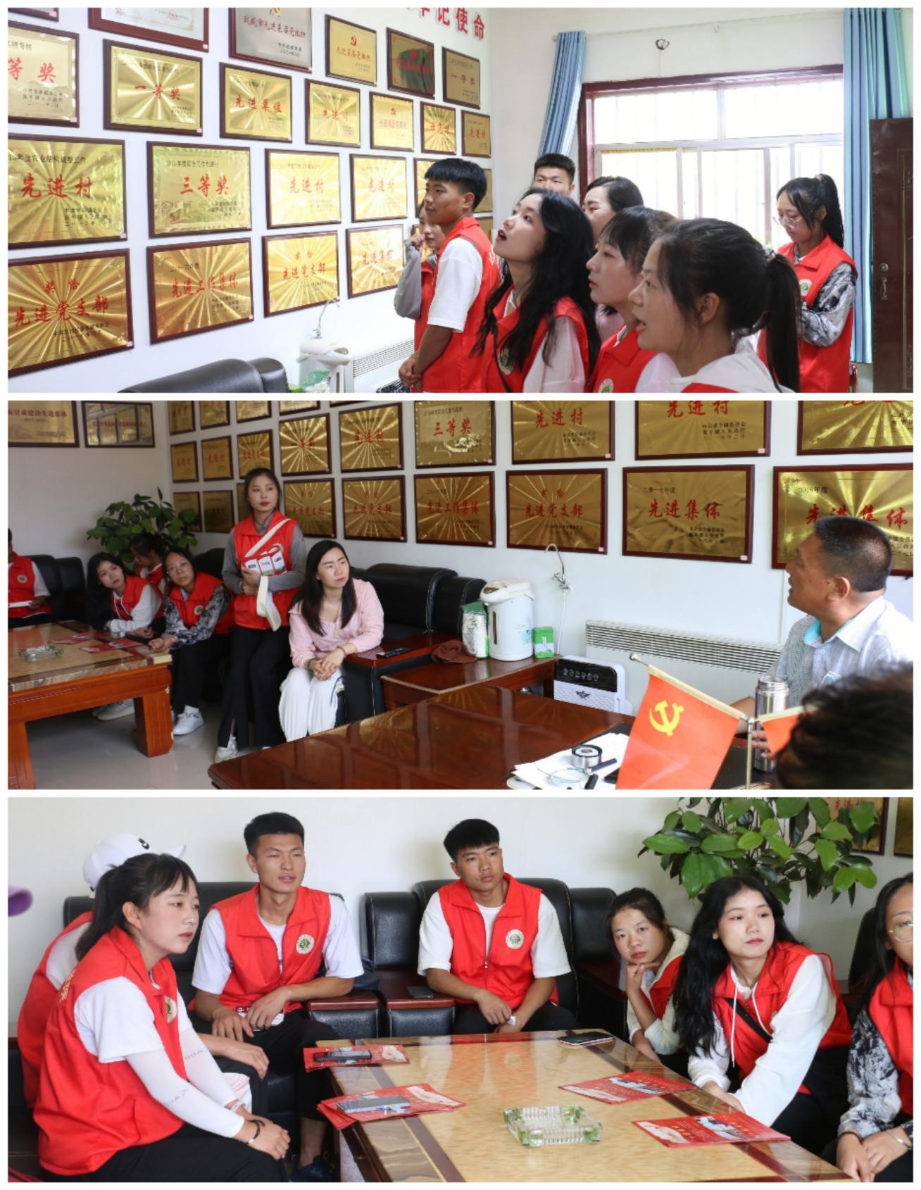 走進楊斌書記的辦公室,全體成員的眼球都被掛滿墻面的那數(shù)十塊獎牌所吸引。從縣區(qū)到市級到省級再到國家級,每一塊獎牌都承載著上莊村全體村民的努力和汗水,凝結(jié)著楊斌書記和村干部的勇氣和決心。