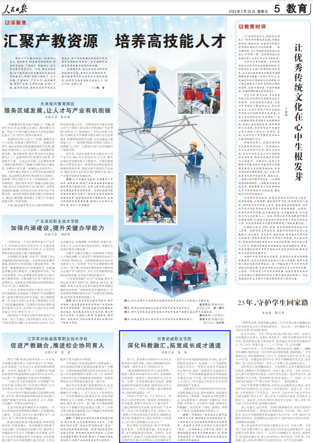 武威職業(yè)學院深化科教融匯,拓寬成長成才通道獲人民日報宣傳報道