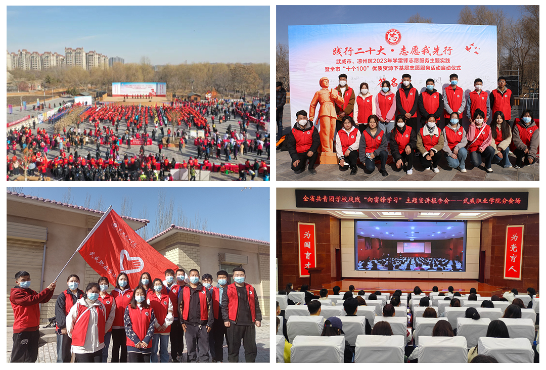 活儀式結(jié)束后,校團委根據(jù)上級組織安排部署,3月5日組織青年志愿者觀看了全省共青團學(xué)校戰(zhàn)線“向雷鋒學(xué)習(xí)”主題宣講線上直播報告會,組隊參加了武威市、涼州區(qū)2023年“踐行二十大 志愿我先行”學(xué)雷鋒志愿服務(wù)主題實踐暨全市“十個100”優(yōu)質(zhì)資源下基層志愿服務(wù)活動啟動儀式,3月6日組隊參加了2023年武威市人體器官捐獻緬懷紀念活動,為學(xué)校學(xué)雷鋒志愿服務(wù)月活動的熱烈開展拉開了序幕,奠定了基礎(chǔ)。