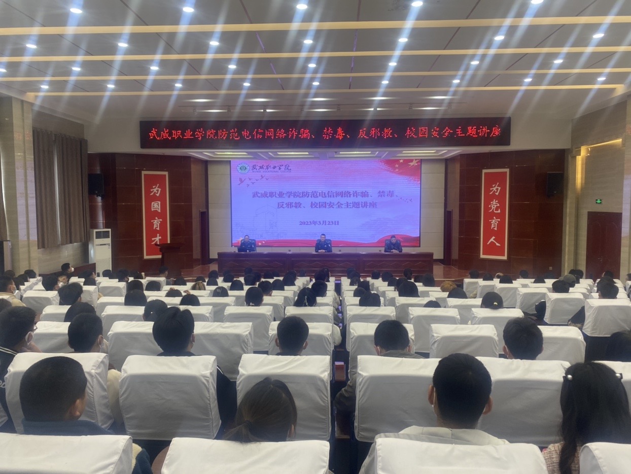 為進(jìn)一步加強(qiáng)防范電信網(wǎng)絡(luò)詐騙、禁毒、反邪教、校園安全宣傳教育工作,提高廣大師生防范意識(shí),3月24日下午,學(xué)校安全保衛(wèi)處邀請(qǐng)涼州區(qū)西關(guān)派出所民警為學(xué)校師生開(kāi)展防范電信網(wǎng)絡(luò)詐騙、禁毒、反邪教、校園安全主題講座。講座由學(xué)校安全保衛(wèi)處負(fù)責(zé)人李欣主持,西關(guān)派出所副所長(zhǎng)藺福鵬參加講座。