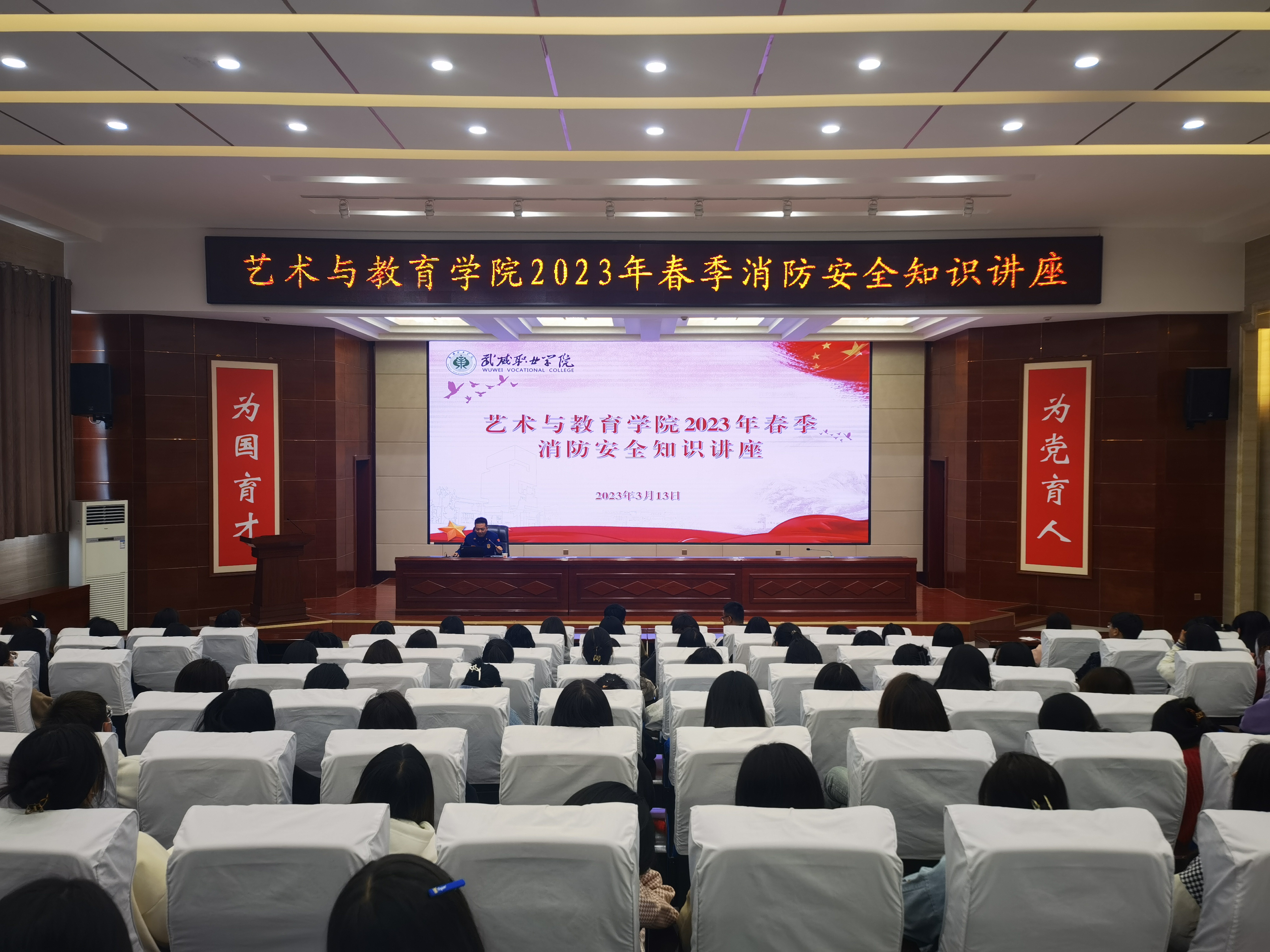 為進一步加強我院師生消防安全意識,提升自我應(yīng)變和防護能力。近日,藝術(shù)與教育學院在大學生發(fā)展中心菁英廳開展了消防安全知識講座。講座由武威市消防救援支隊涼都特勤站站長武子奇主講,200多名師生參加講座。