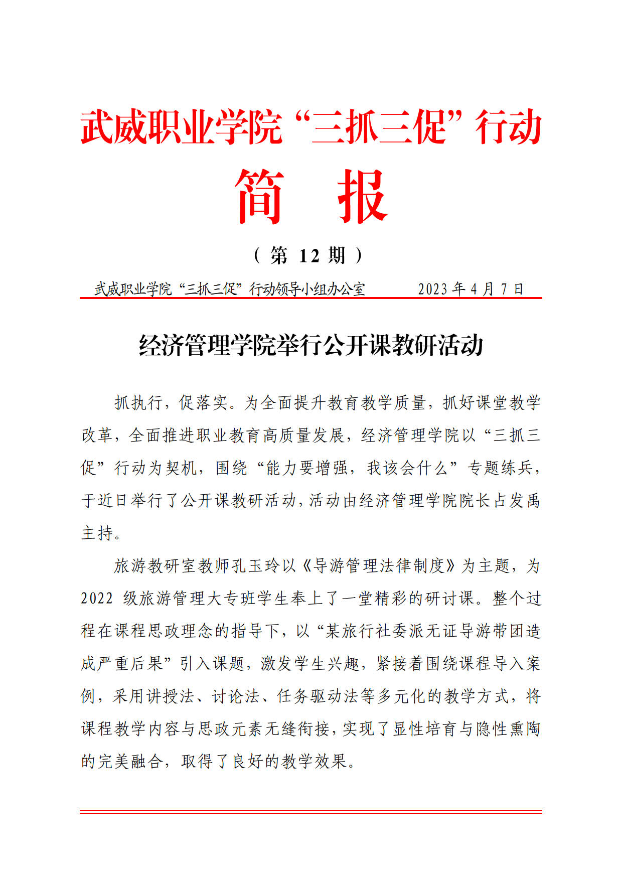 簡報第12期:經(jīng)濟管理學院舉行公開課教研活動
