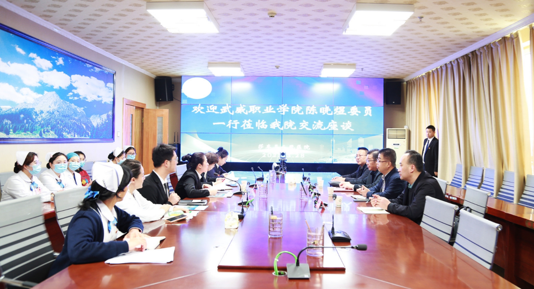 在和田地區(qū)人民醫(yī)院訪(fǎng)企拓崗座談會(huì)上,陳曉煜介紹了學(xué)校發(fā)展情況和本次走訪(fǎng)醫(yī)院的工作任務(wù),希望進(jìn)一步加強(qiáng)校院深度合作,共同優(yōu)化人才培養(yǎng)方案和課程設(shè)置,提升學(xué)校人才培養(yǎng)質(zhì)量,為邊疆衛(wèi)生事業(yè)發(fā)展提供人才支持。張建輝從學(xué)校二級(jí)學(xué)院設(shè)置、師資隊(duì)伍、教育教學(xué)、開(kāi)設(shè)專(zhuān)業(yè)、人才培養(yǎng)、畢業(yè)生實(shí)習(xí)就業(yè)等方面做了介紹。和田地區(qū)人民醫(yī)院院長(zhǎng)艾尼玩·阿布都熱依木介紹了醫(yī)院的基本情況及用人需求,對(duì)我校畢業(yè)生給予了高度評(píng)價(jià)。醫(yī)院現(xiàn)有我校醫(yī)藥衛(wèi)生類(lèi)專(zhuān)業(yè)畢業(yè)生86人,其中13名護(hù)理專(zhuān)業(yè)畢業(yè)生擔(dān)任相關(guān)科室護(hù)士長(zhǎng),成為醫(yī)院護(hù)理崗位中堅(jiān)力量,他希望學(xué)校培養(yǎng)更多優(yōu)秀畢業(yè)生到醫(yī)院實(shí)習(xí)就業(yè)。