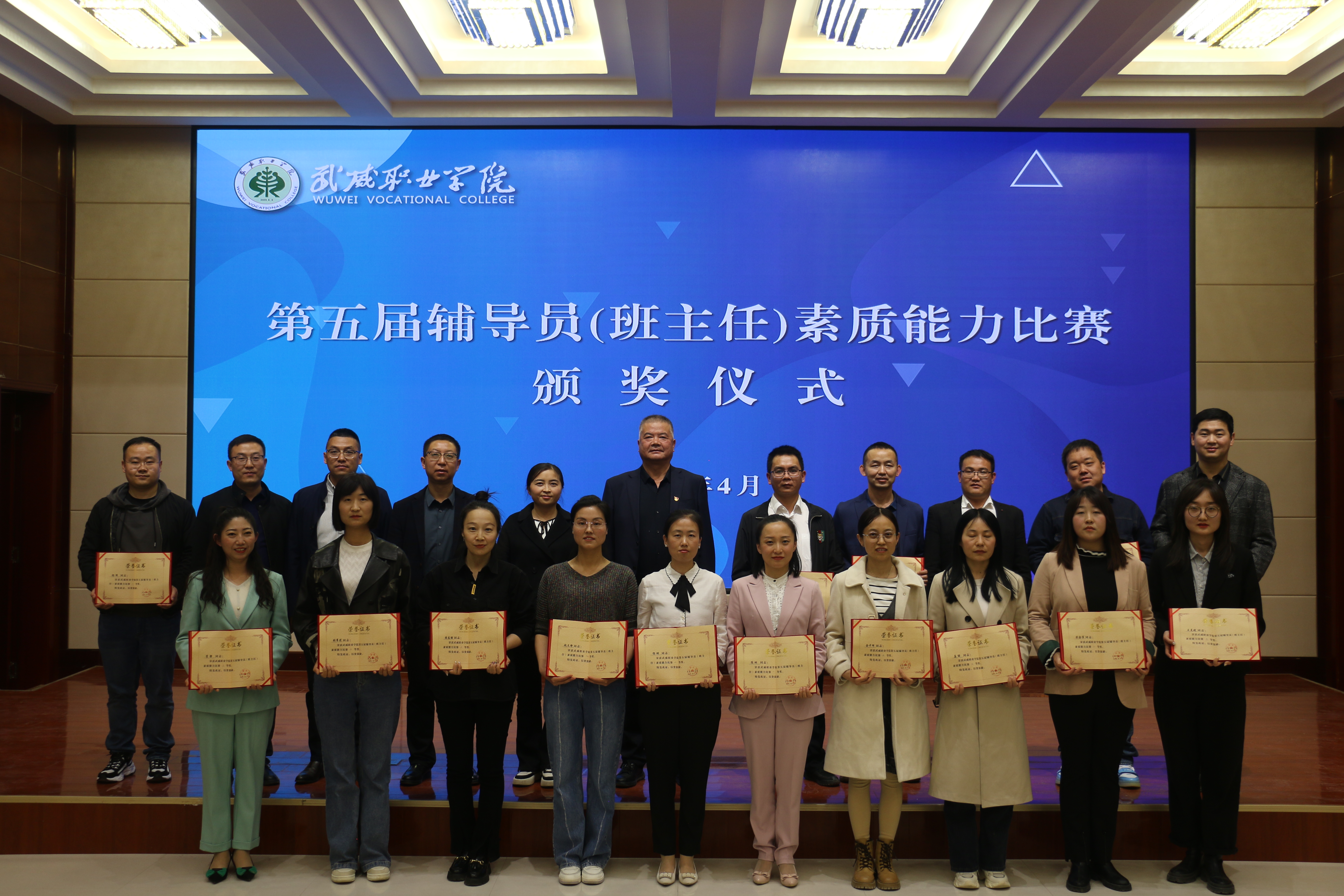 4月18日至20日,武威職業(yè)學院第五屆輔導員(班主任)素質能力比賽在菁英廳成功舉辦。決賽現(xiàn)場,學院黨委委員、副校長王守云出席活動并為獲獎選手頒獎。