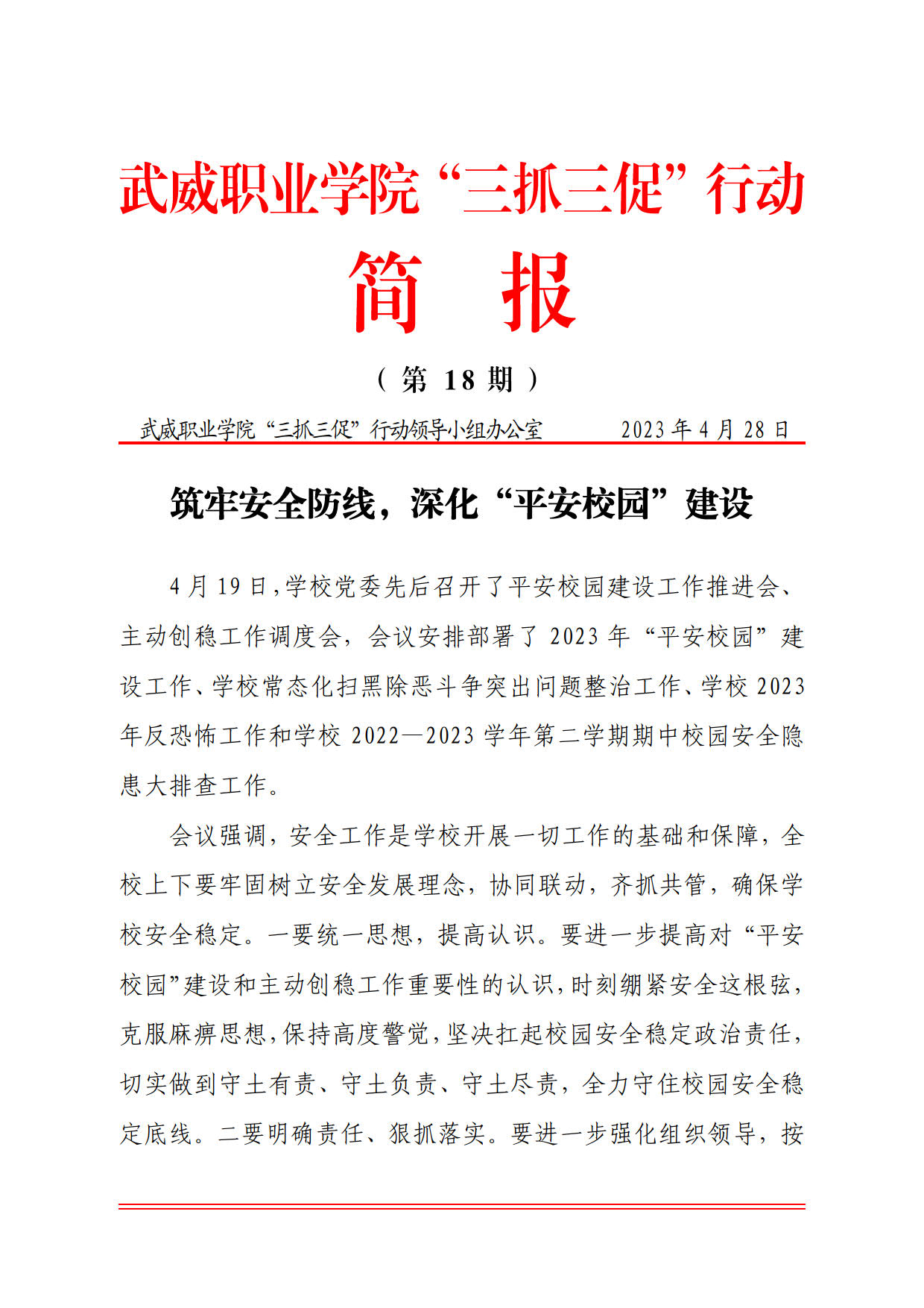 簡(jiǎn)報(bào)第18期:筑牢安全防線,深化“平安校園”建設(shè)