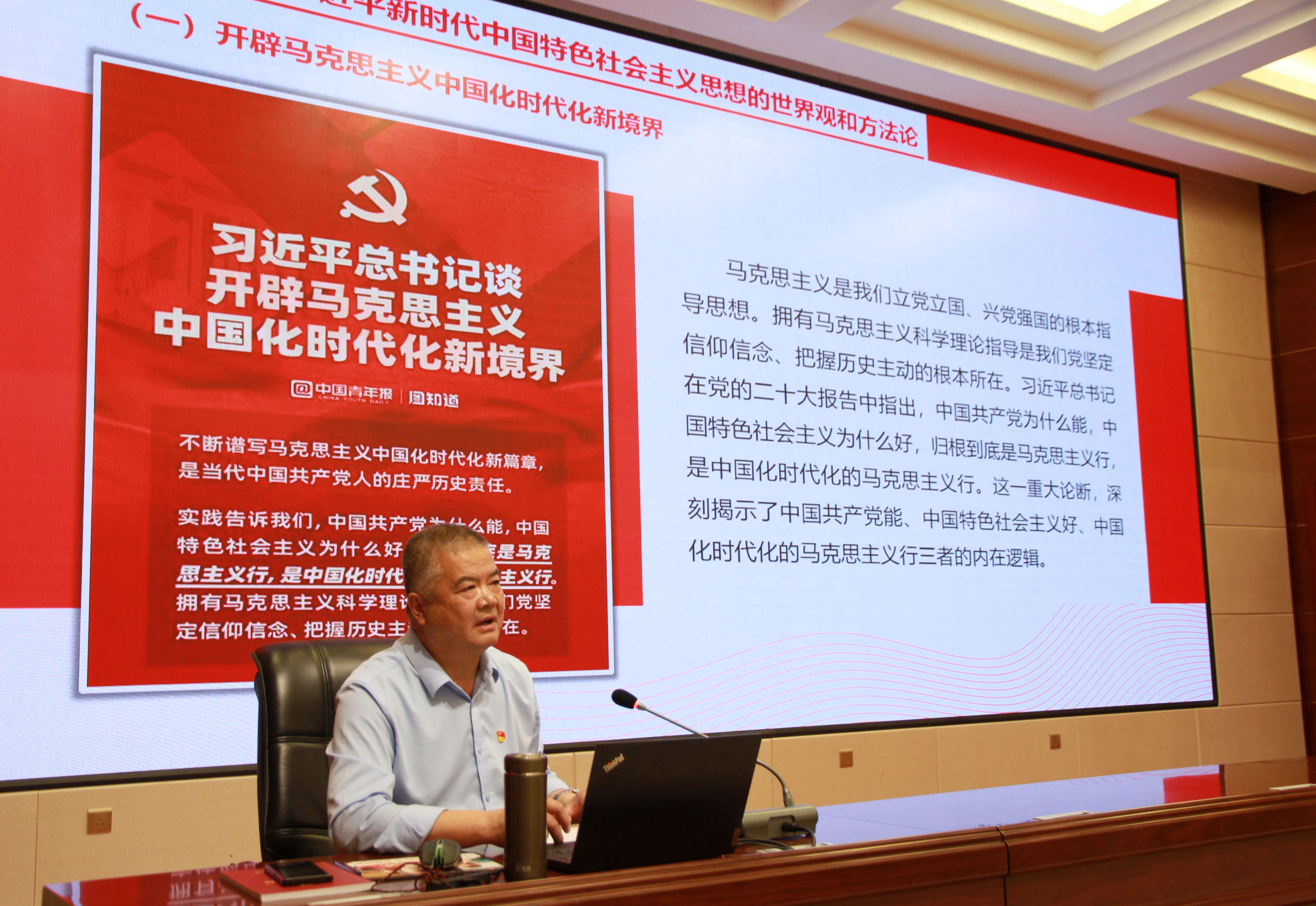 授課中,王守云圍繞“牢牢把握習(xí)近平新時代中國特色社會主義思想的世界觀和方法論、深入學(xué)習(xí)貫徹習(xí)近平總書記關(guān)于教育的重要論述、學(xué)習(xí)貫徹習(xí)近平新時代中國特色社會主義思想的收獲、強化育人工作的重點舉措”等四個方面,分享了自己對主題教育重大意義的認(rèn)識和體會。聚焦“學(xué)思想、強黨性、重實踐、建新功”總要求,圍繞統(tǒng)籌推進“三抓三促”行動,緊密結(jié)合學(xué)校發(fā)展實際,為藝術(shù)與教育學(xué)院和經(jīng)濟管理學(xué)院黨員干部授課輔導(dǎo),交流了思想和認(rèn)識,提出了希望和要求。