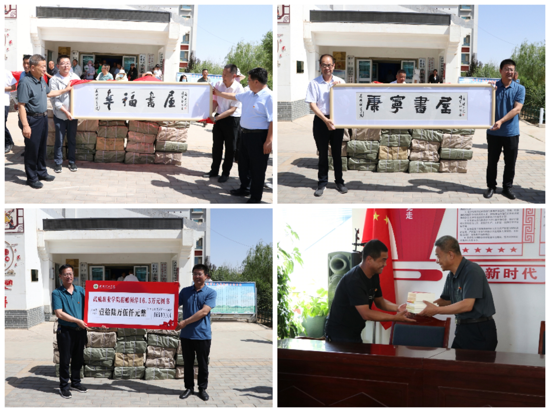 趙明、何文國(guó)就文化振興項(xiàng)目進(jìn)行了深入交流,簽訂了《定向幫扶捐贈(zèng)協(xié)議》《武威職業(yè)學(xué)院在橫梁鄉(xiāng)幸福新村、康寧新村捐建開(kāi)放式農(nóng)家書(shū)屋的協(xié)議書(shū)》,雙方代表為幸福書(shū)屋、康寧書(shū)屋揭牌,學(xué)校為橫梁鄉(xiāng)捐贈(zèng)文化振興專項(xiàng)資金13萬(wàn)元和碼洋16.5萬(wàn)元的圖書(shū)。