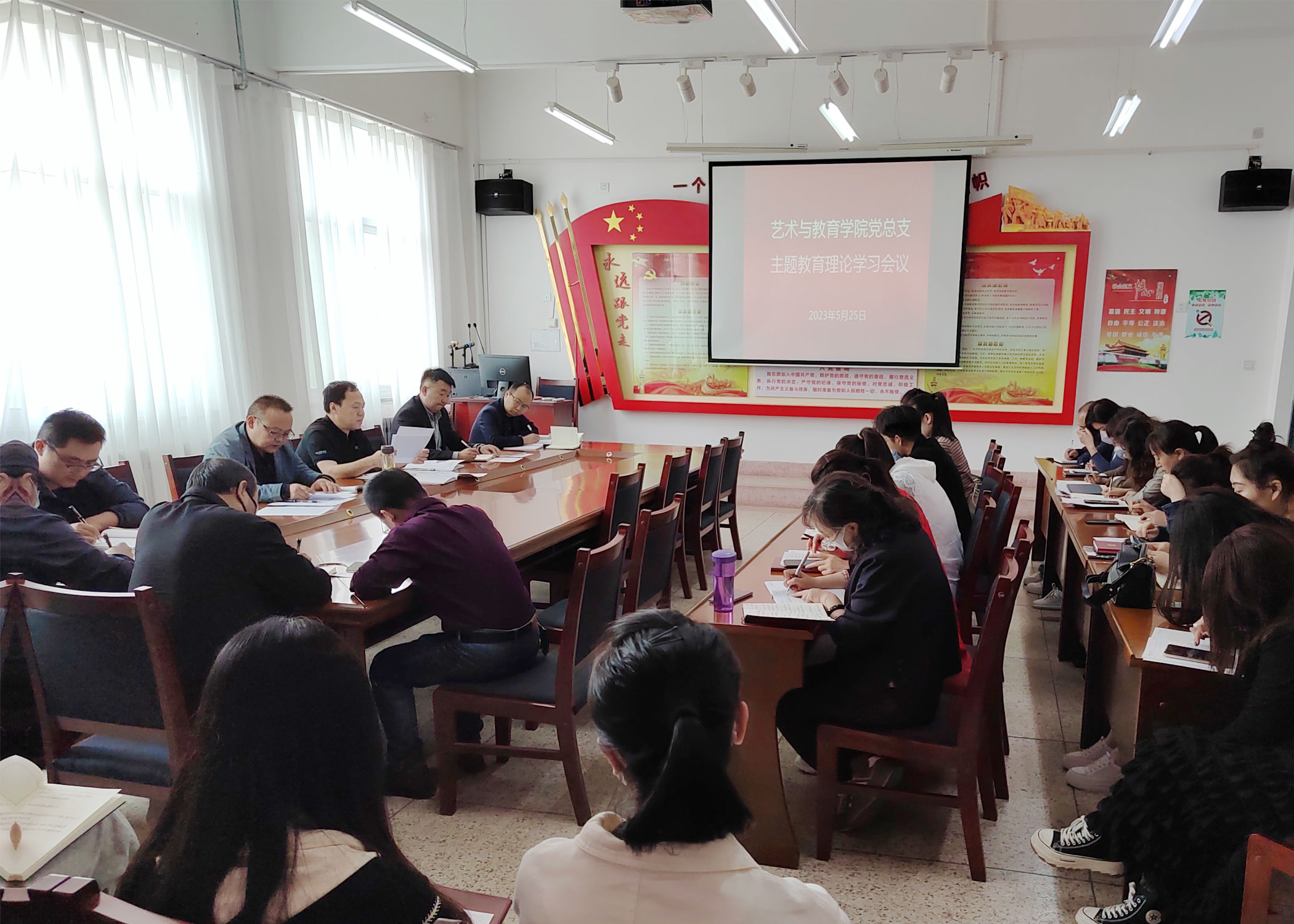 近日,藝術(shù)與教育學(xué)院黨總支開展學(xué)習(xí)貫徹習(xí)近平新時(shí)代中國特色社會主義思想主題教育專題學(xué)習(xí)及研討活動,全體黨員及入黨積極分子參加了本次活動。