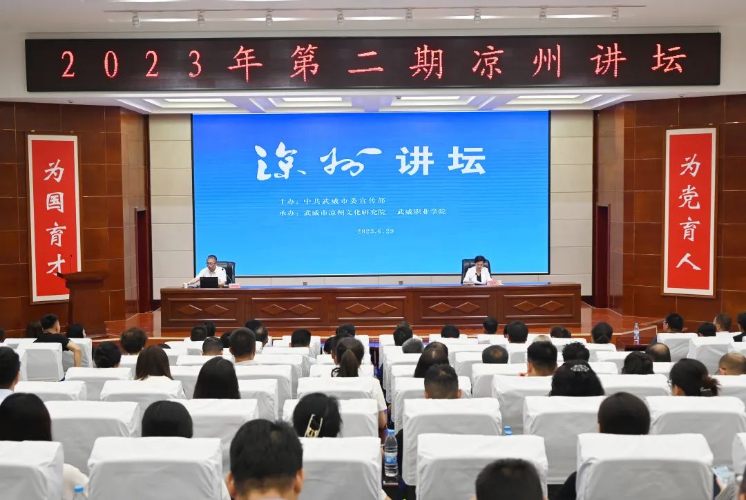 本期講壇由武威市委宣傳部主辦,市涼州文化研究院、武威職業(yè)學(xué)院承辦。市直部門(單位)、“兩代表一委員”、武威職業(yè)學(xué)院師生共200多人參加。本次講座也是武威職業(yè)學(xué)院綠洲講壇系列講座之一。