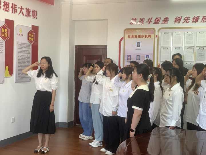 教師黨員趙文杰帶領(lǐng)全體預(yù)備黨員進(jìn)行入黨宣誓,全體老黨員重溫入黨誓詞。黨員們集體面向黨旗,舉起右拳,跟隨領(lǐng)誓人宣誓,鄭重許下對(duì)黨的承諾,表達(dá)著自己為共產(chǎn)主義事業(yè)奮斗終身的決心。每位黨員都接受了一次深刻的思想洗禮,更加明確了新時(shí)代黨員的責(zé)任擔(dān)當(dāng)。