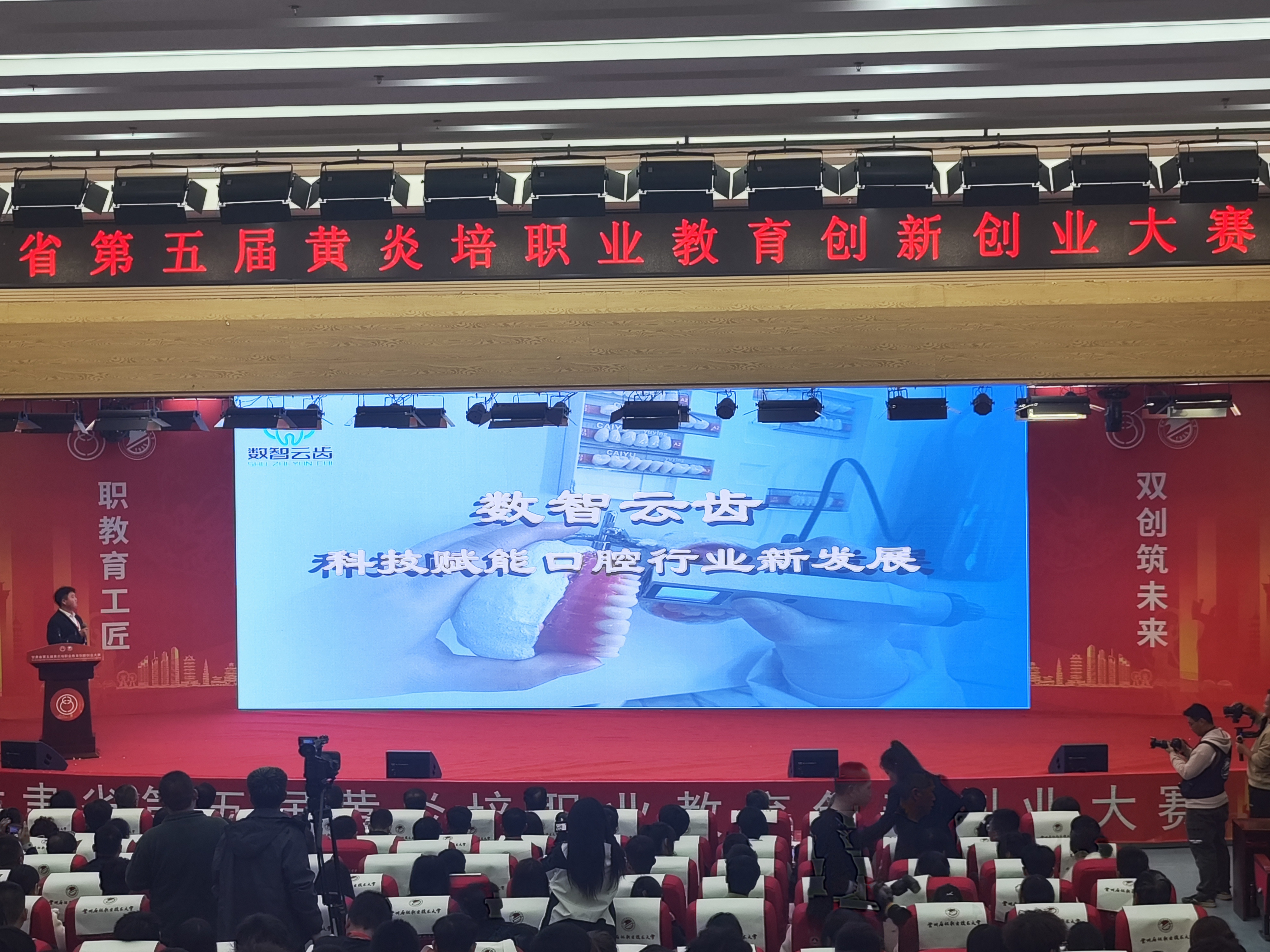本屆大賽以“職教育工匠,雙創(chuàng)筑未來”為主題,設(shè)主題賽和專項賽,省內(nèi)47所院校近300名選手參加決賽,經(jīng)過激烈角逐,我校獲一等獎1項,三等獎4項,學(xué)校榮獲優(yōu)秀組織獎?!稊?shù)智云齒--科技賦能口腔行業(yè)新發(fā)展》項目在頒獎晚會代表優(yōu)秀項目進行路演。