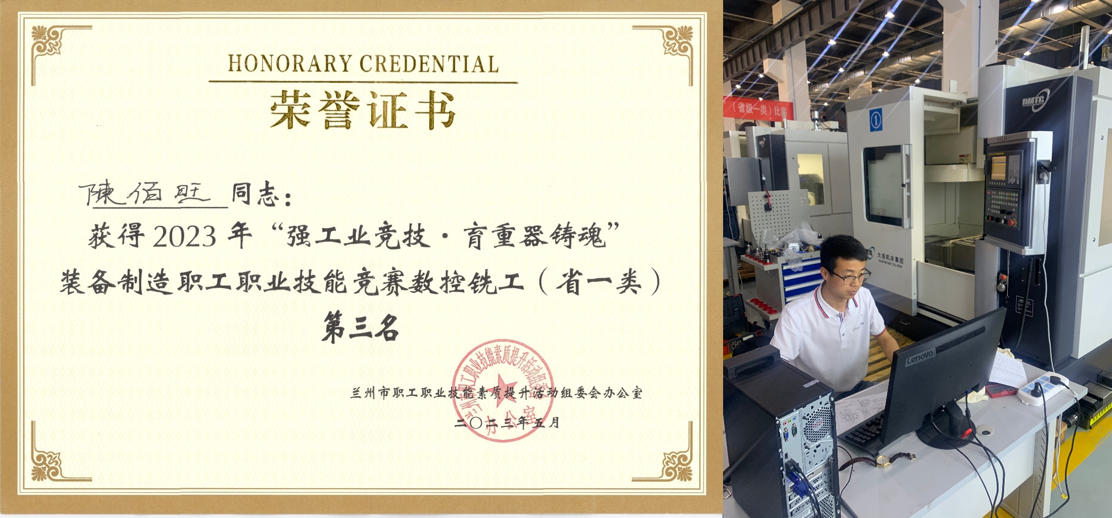 為深入學(xué)習(xí)貫徹黨的二十大精神,聚焦實施強工業(yè)、強科技、強省會、強縣城“四強行動”,著力打造高技能人才隊伍,2023年6月,由甘肅省總工會主辦,蘭州市總工會和蘭石集團承辦的2023年全省職工職業(yè)技能競賽“數(shù)控銑”賽項省級一類決賽在蘭州新區(qū)舉辦,來自全省22個企事業(yè)單位46名職工選手參賽。工會聯(lián)合工程技術(shù)學(xué)院積極組隊參賽,代表武威市參加了本次比賽。經(jīng)過三天的競技角逐,我校教師陳佰旺取得二等獎(第三名)的優(yōu)異成績,獲得了“甘肅省技術(shù)能手”和“甘肅省技術(shù)標(biāo)兵”榮譽稱號。