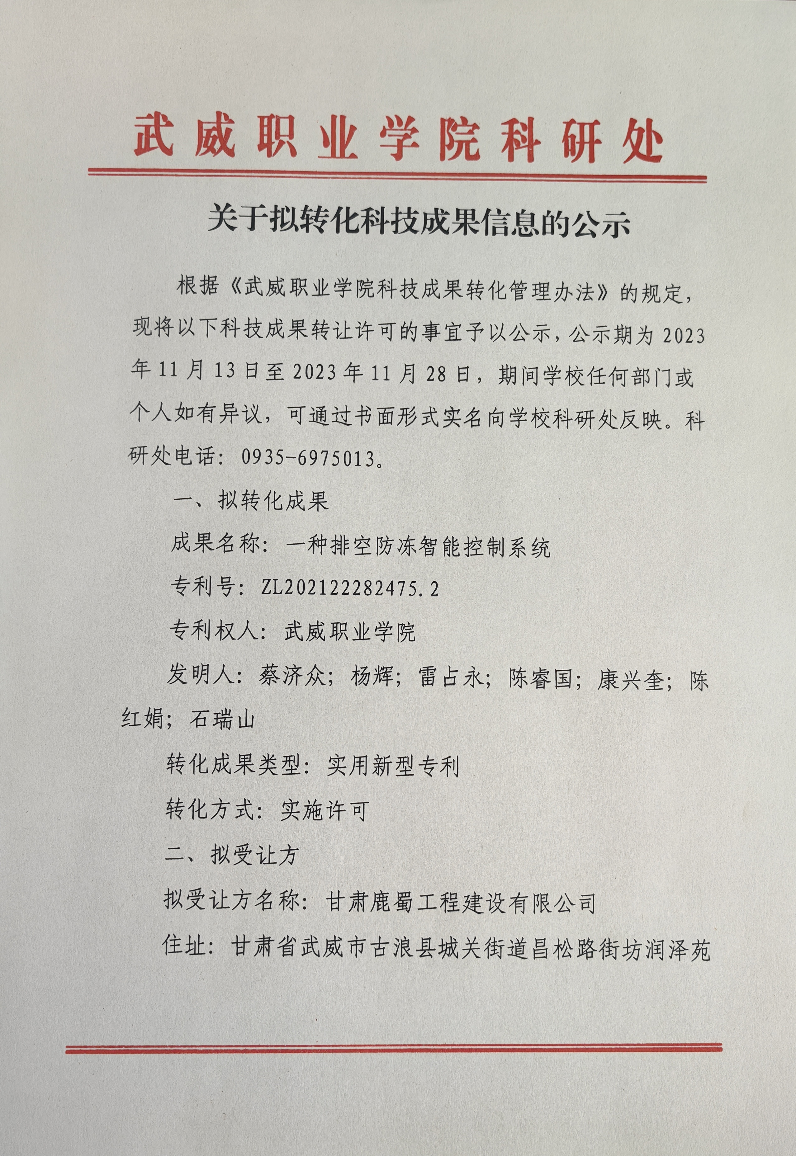 關于武威職業(yè)技術大學2025年度校級科技創(chuàng)新團隊…