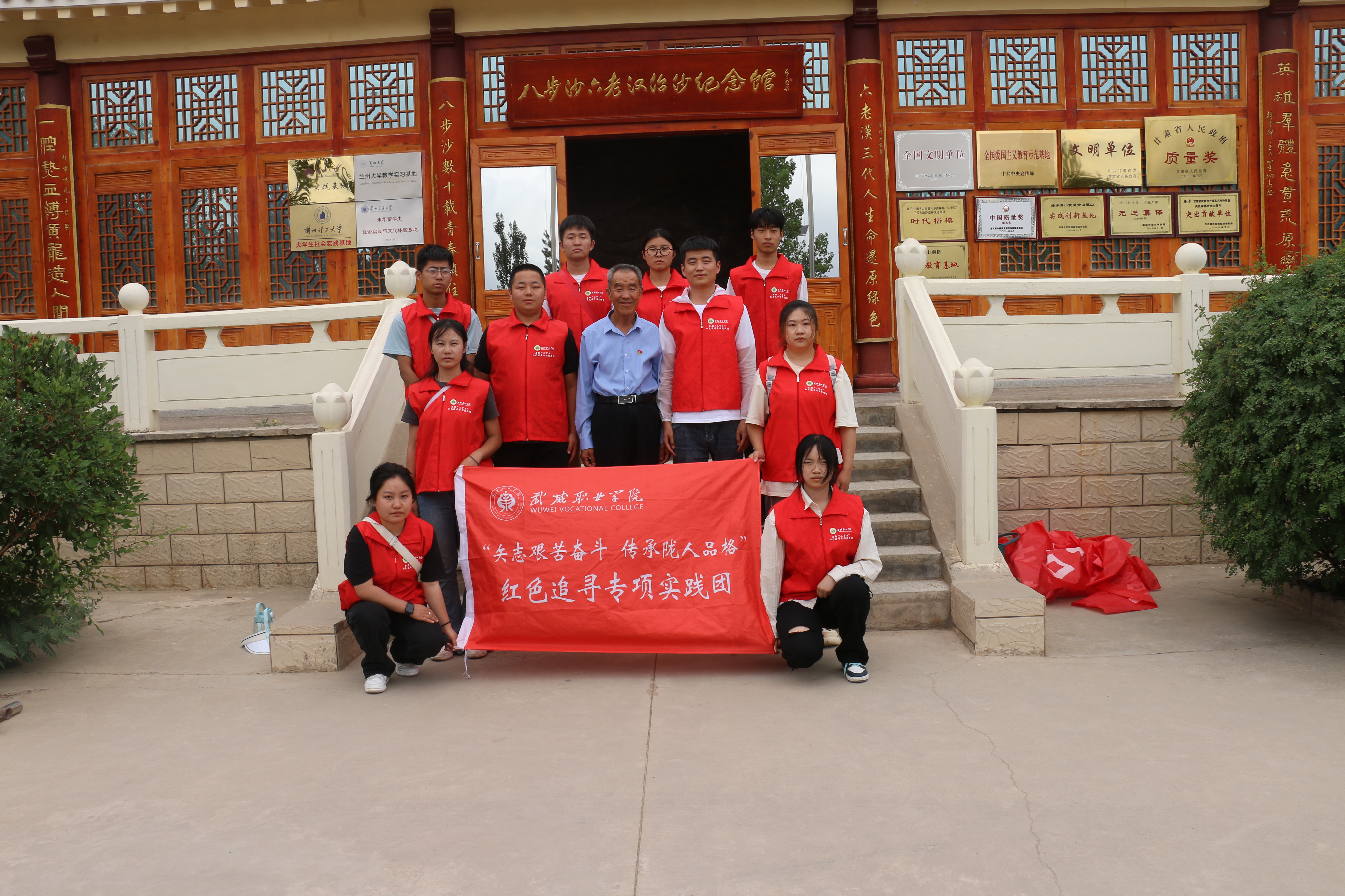 “追尋紅色足跡 爭(zhēng)做時(shí)代新人”實(shí)踐團(tuán)通過(guò)走訪古浪戰(zhàn)役紀(jì)念館、八步沙綠色實(shí)踐基地、古浪縣富民新村等實(shí)踐基地,帶領(lǐng)同學(xué)們尋訪紅色革命遺址,深刻感悟“困難面前不低頭,敢把沙漠變綠洲”的當(dāng)代愚公精神;通過(guò)走訪參觀武威市名勝古跡,體悟國(guó)家歷史文化名城厚重的文化底蘊(yùn),增強(qiáng)文化自信,爭(zhēng)做新時(shí)代的文化傳承人。
