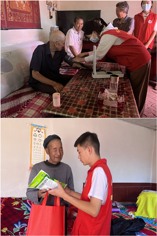 “情系醫(yī)護(hù),讓愛(ài)永恒”社會(huì)實(shí)踐團(tuán)深入涼州區(qū)鄉(xiāng)鎮(zhèn)村落、社區(qū)、企業(yè),針對(duì)老年人、少年兒童開(kāi)展健康普查、流行性疾病防治宣講、基本醫(yī)療衛(wèi)生知識(shí)普及、特殊關(guān)愛(ài)及醫(yī)療扶持等實(shí)踐活動(dòng),為當(dāng)?shù)卮迕衩赓M(fèi)發(fā)放基本醫(yī)療物資,為當(dāng)?shù)乩先肆繙y(cè)血壓,并現(xiàn)場(chǎng)講解常見(jiàn)慢性病的預(yù)防知識(shí)和進(jìn)行急救演練,用他們的實(shí)際行動(dòng)助力健康中國(guó)戰(zhàn)略實(shí)施。