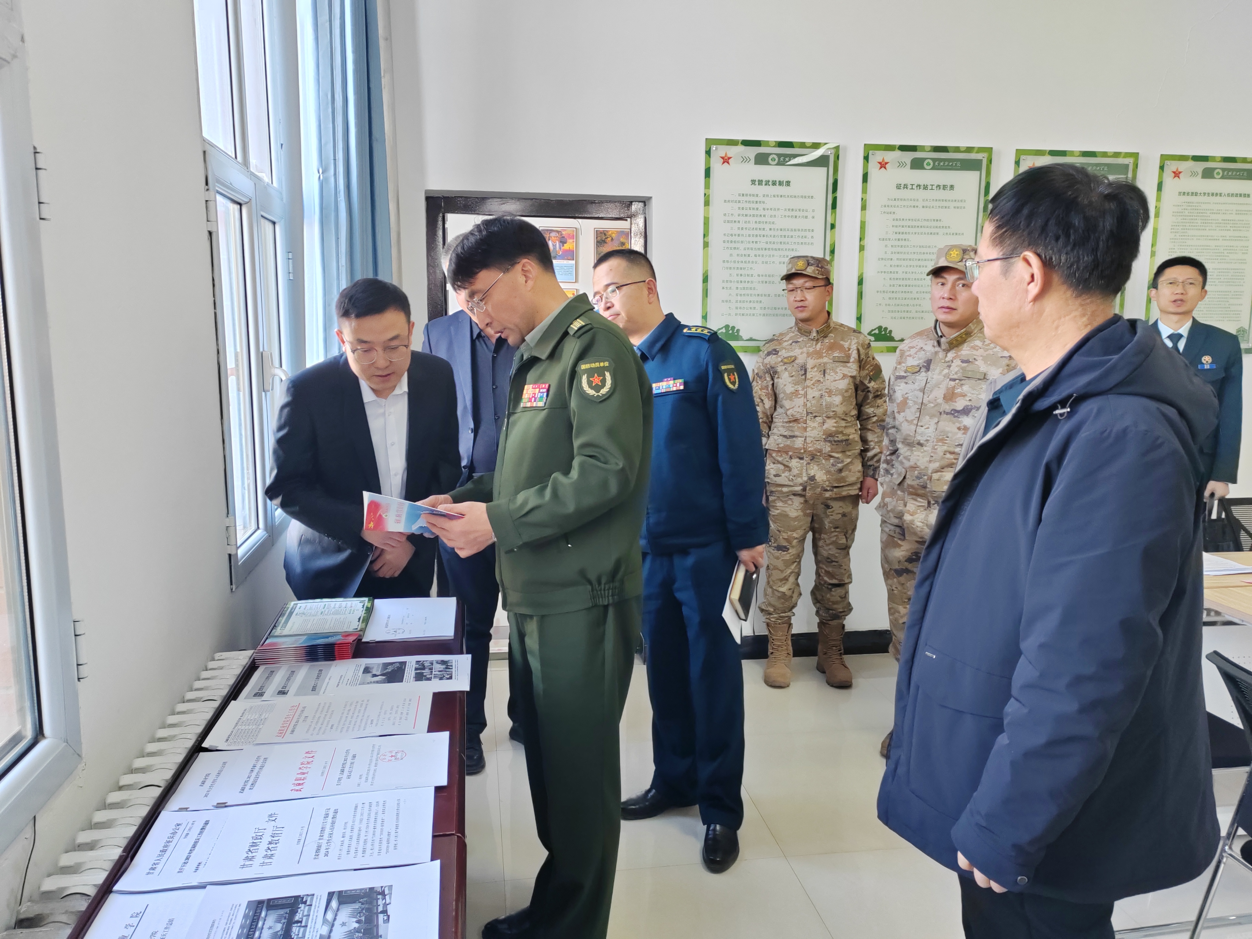 1月9日下午,武威市征兵領(lǐng)導小組副組長、軍分區(qū)大校司令員陳習友帶工作組一行5人,來我校調(diào)研征兵工作開展情況。校長、黨委副書記張開禮,黨委委員、副校長王守云陪同調(diào)研。