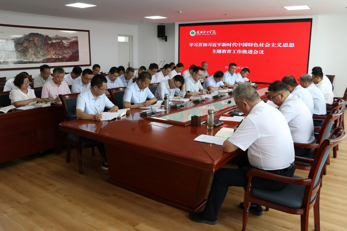 學校黨委班子成員,副縣級干部及各部門、二級學院負責人,各黨總支、直屬黨支部書記,主題教育領導小組辦公室成員參加了會議。