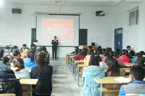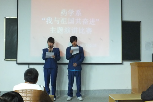 為了深入學(xué)習(xí)貫徹黨的十八大精神,引領(lǐng)廣大學(xué)生為實(shí)現(xiàn)國(guó)家富強(qiáng)、民族復(fù)興、人民幸福的偉大“中國(guó)夢(mèng)”而奮發(fā)學(xué)習(xí)、努力奮斗,藥學(xué)系于2013年12月3日組織全體師生開(kāi)展了以“我與祖國(guó)共奮進(jìn)”為主題的演講比賽。