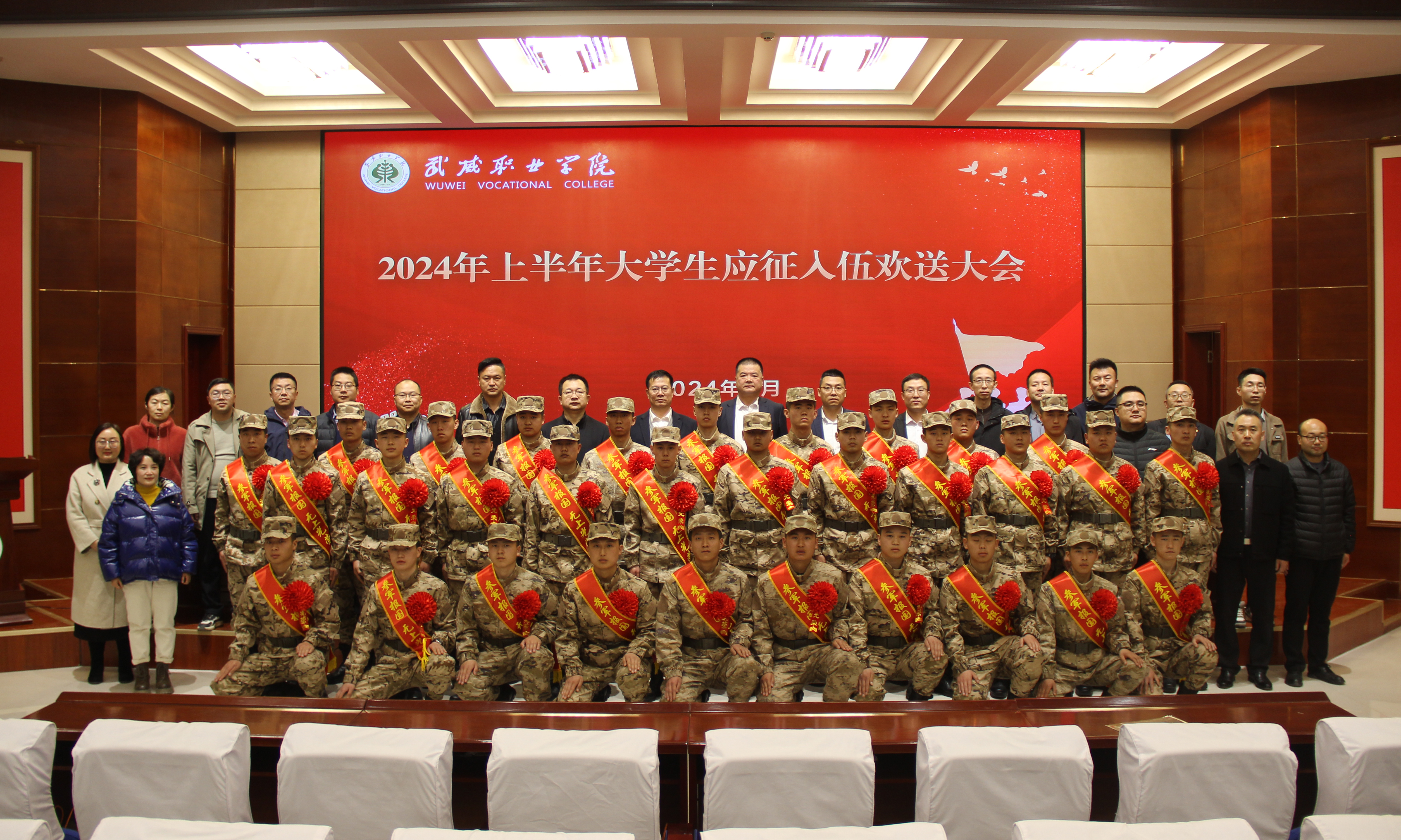 學(xué)校熱烈歡送2024年上半年應(yīng)征入伍大學(xué)生