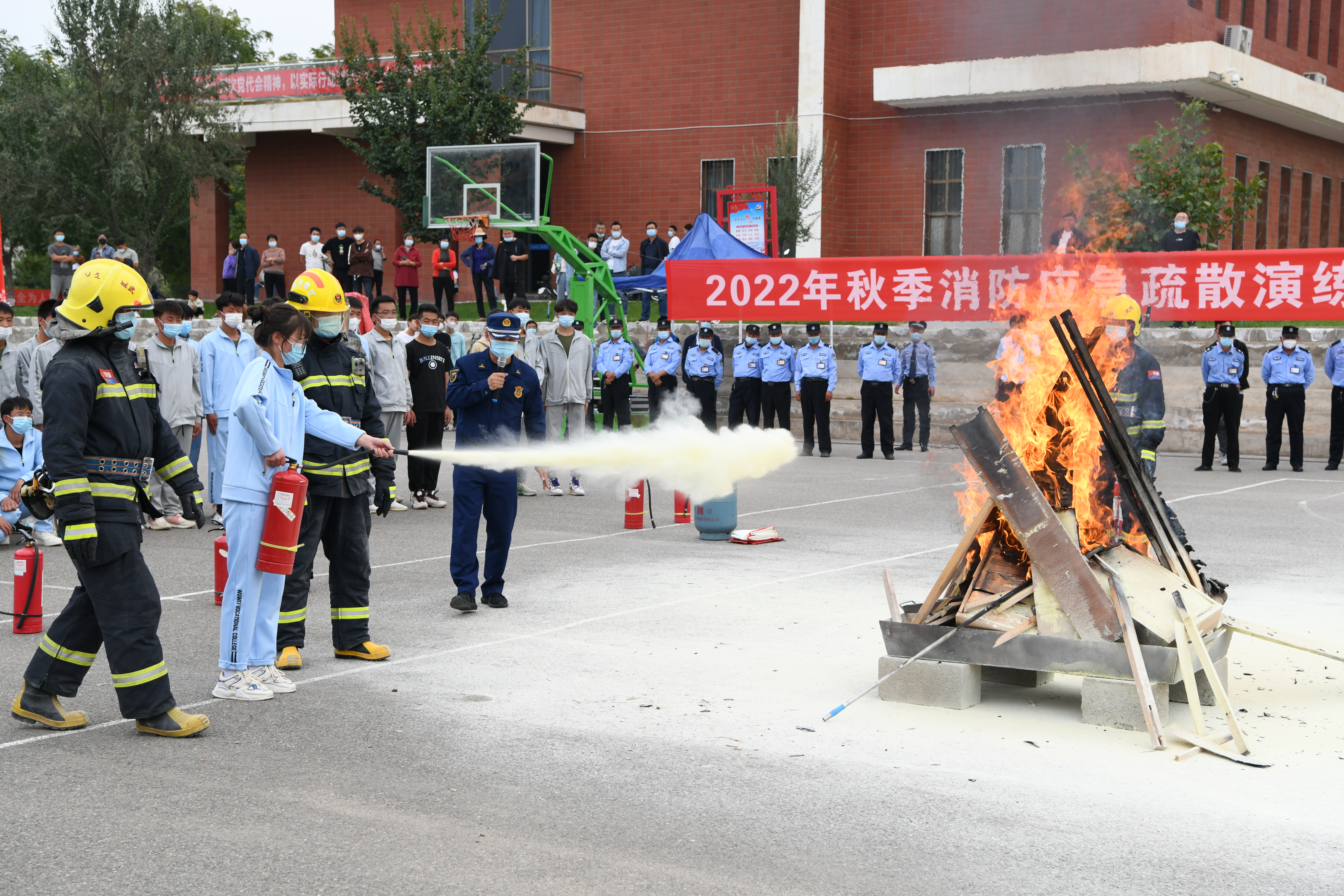 9月30日,學(xué)校聯(lián)合武威市消防救援支隊(duì)舉行了2022年秋季消防應(yīng)急疏散暨滅火演練活動。學(xué)校副校長王守云、武威市消防救援支隊(duì)涼都特勤站副站長張旭出席活動,安全保衛(wèi)處、學(xué)生工作處、各二級學(xué)院負(fù)責(zé)人和輔導(dǎo)員、班主任現(xiàn)場觀摩演練,約4200多名2022級新生參加了演練。