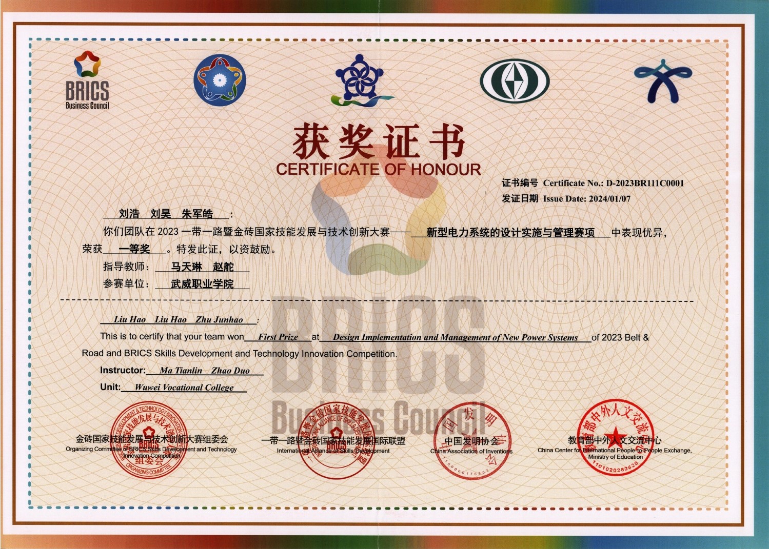2023年一帶一路暨金磚國家技能發(fā)展與技術(shù)創(chuàng)新大賽新型電力系統(tǒng)的設(shè)計實施賽項一等獎