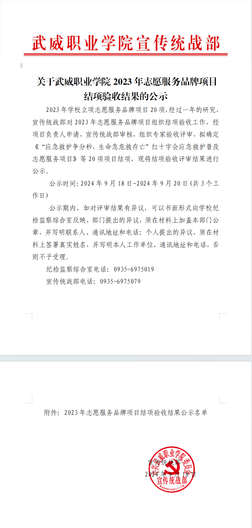 關(guān)于武威職業(yè)學(xué)院2023年志愿服務(wù)品牌項(xiàng)目結(jié)項(xiàng)驗(yàn)收結(jié)果的公示