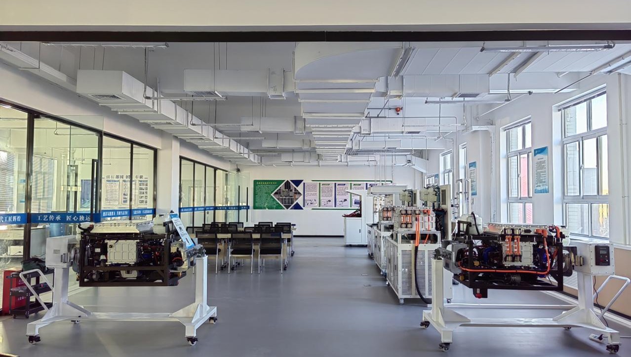 本實(shí)訓(xùn)室主要服務(wù)的課程有:氫能汽車動(dòng)力系統(tǒng)運(yùn)行與維護(hù)、燃料電池技術(shù)、氫能應(yīng)用技術(shù)等。主要設(shè)備包括4臺(tái)3KW氫動(dòng)力系統(tǒng)實(shí)訓(xùn)臺(tái)架和2臺(tái)10KW動(dòng)力系統(tǒng)測(cè)試臺(tái)架。