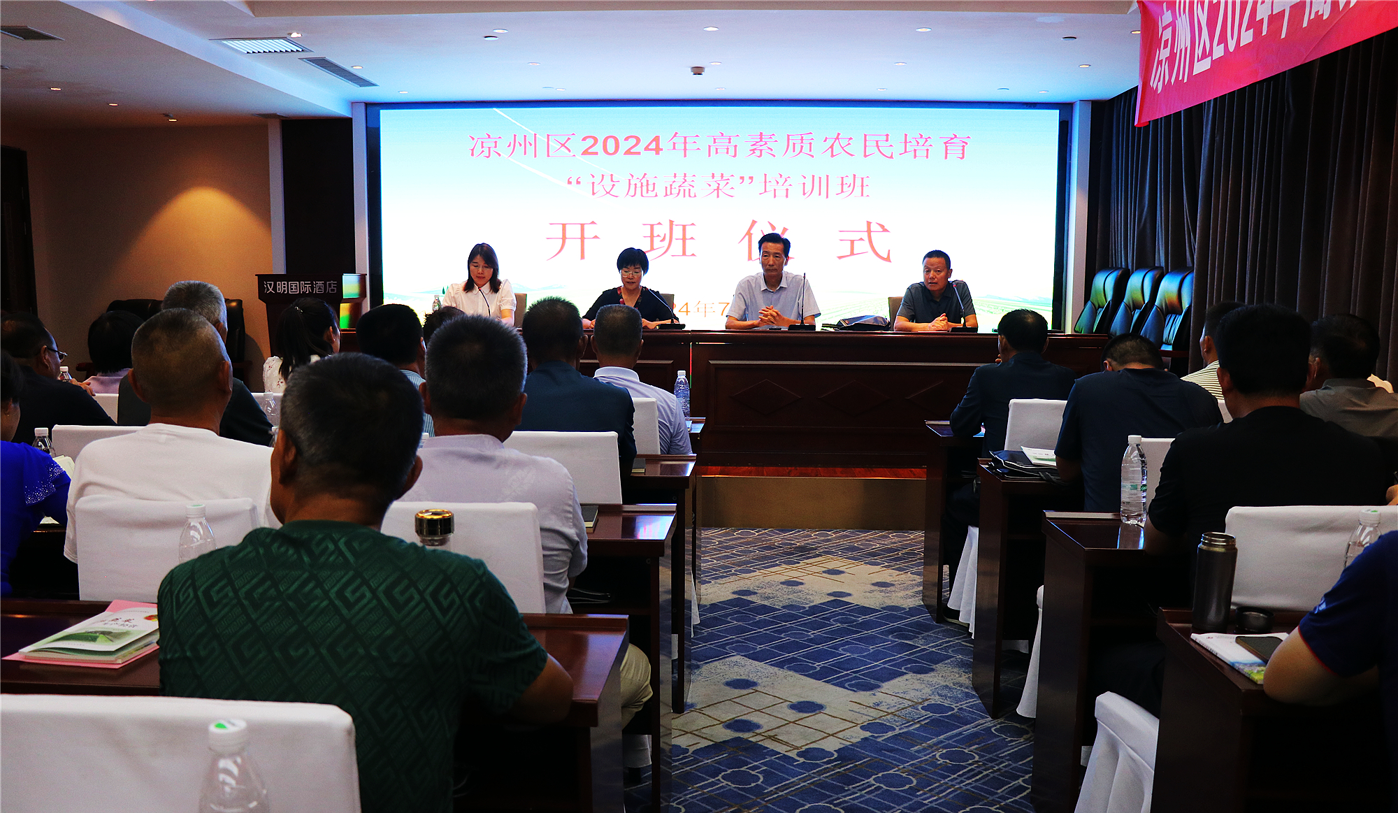 7月22日上午,由涼州區(qū)農(nóng)業(yè)農(nóng)村局主辦,我校承辦的涼州區(qū)2024年高素質(zhì)農(nóng)民培育專(zhuān)業(yè)生產(chǎn)型“設(shè)施蔬菜”培訓(xùn)班順利開(kāi)班,來(lái)自全區(qū)的100名農(nóng)民學(xué)員參加培訓(xùn)學(xué)習(xí)。學(xué)校黨委委員、副校長(zhǎng)何毅、涼州區(qū)農(nóng)業(yè)廣播電視學(xué)校校長(zhǎng)魯曉衛(wèi)、涼州區(qū)農(nóng)業(yè)農(nóng)村局科教股負(fù)責(zé)人楊進(jìn)橋出席了開(kāi)班儀式。涼州區(qū)農(nóng)業(yè)廣播電視學(xué)校副校長(zhǎng)潘香梅主持開(kāi)班儀式。