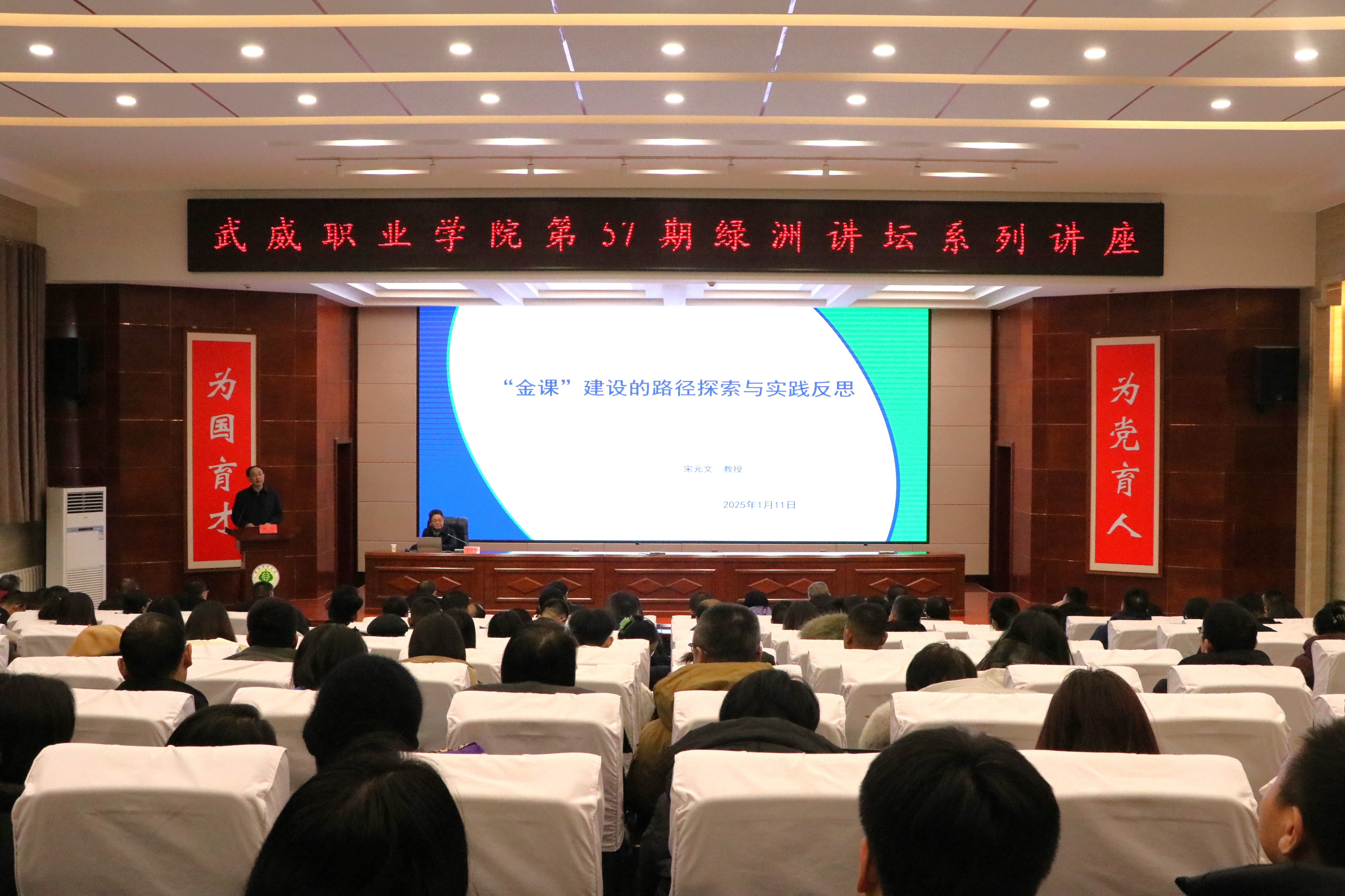 1月11日下午,學(xué)校特邀原蘭州資源環(huán)境職業(yè)技術(shù)大學(xué)副校長(zhǎng)宋元文教授在菁英廳作了《“金課”建設(shè)的實(shí)踐反思與路徑探索》主題講座。講座由學(xué)校黨委書(shū)記王宏主持,學(xué)校領(lǐng)導(dǎo)、中層管理干部、教研室主任及教師代表共210余人參加。