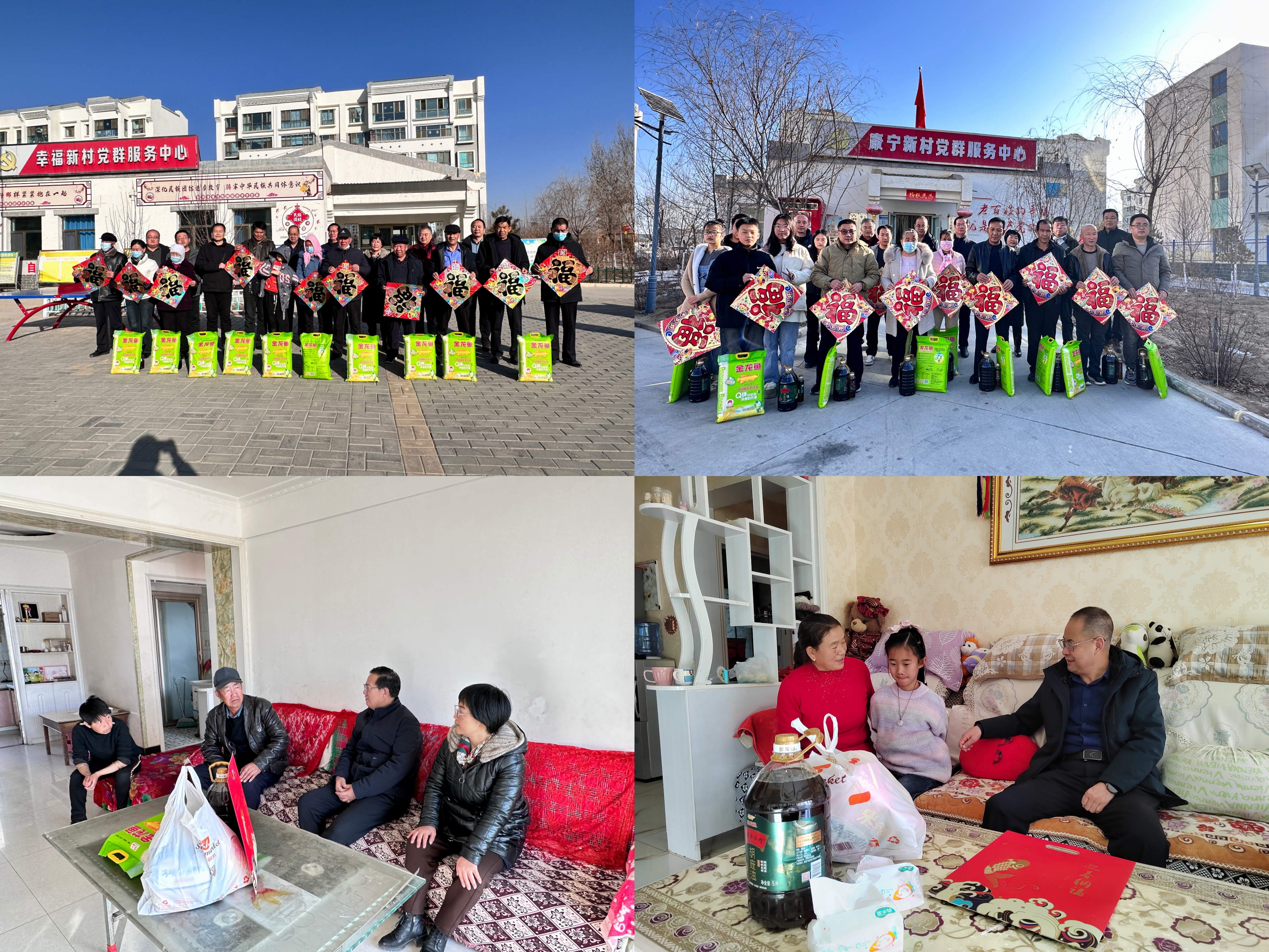 1月22日,學(xué)校在古浪縣橫梁鄉(xiāng)康寧新村、幸福新村開展春節(jié)前走訪慰問和送溫暖、送春聯(lián)、送祝?;顒?dòng)。黨委副書記、副校長張開禮,黨委副書記翟存祥,副校長何毅帶隊(duì)到村,與橫梁鄉(xiāng)政府和2個(gè)村委會相關(guān)同志就加快推進(jìn)鄉(xiāng)村振興開展共同研究,就來年幫扶工作作了對接溝通。校領(lǐng)導(dǎo)為困難群眾、結(jié)對幫扶戶、駐村工作隊(duì)送上春聯(lián)、福字、窗花、大米、胡麻油等慰問品,并開展文化共建,將學(xué)校的關(guān)心關(guān)愛傳遞到了基層群眾心里,進(jìn)一步豐富了群眾精神文化生活,營造了祥和、喜慶的節(jié)日氛圍。