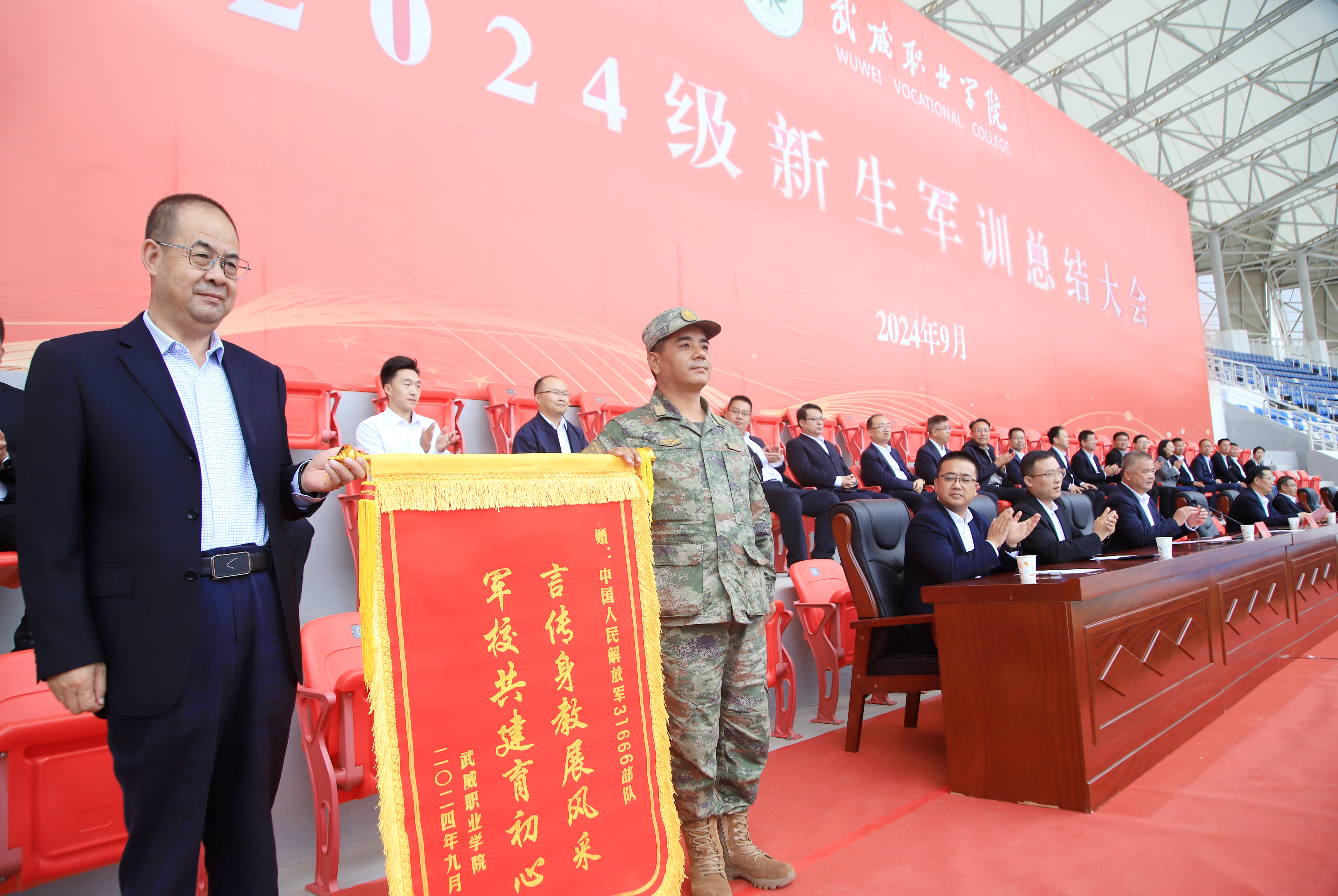 會上,翟存祥代表學校向承訓部隊贈送錦旗致以崇高的敬意,向奮戰(zhàn)在訓練一線的軍訓教官及工作人員表示衷心的感謝!陳曉煜宣讀了2024級新生軍訓工作先進集體、先進個人、優(yōu)秀教官和軍訓標兵擬表彰名單。與會領(lǐng)導為軍訓先進集體和個人頒發(fā)了獎牌和榮譽證書。
