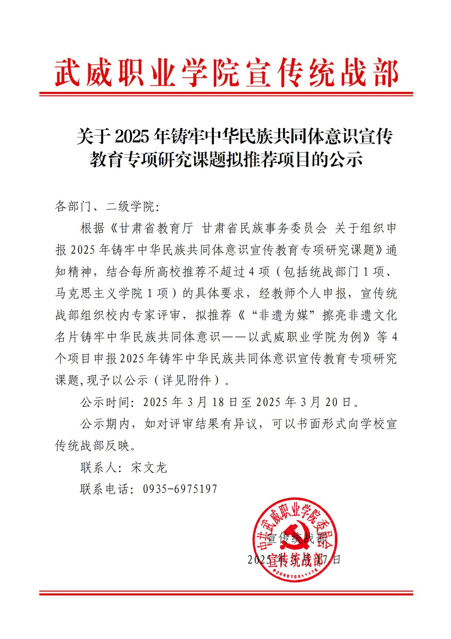 關(guān)于2025年鑄牢中華民族共同體意識宣傳教育專項(xiàng)研究課題擬推薦項(xiàng)目的公示