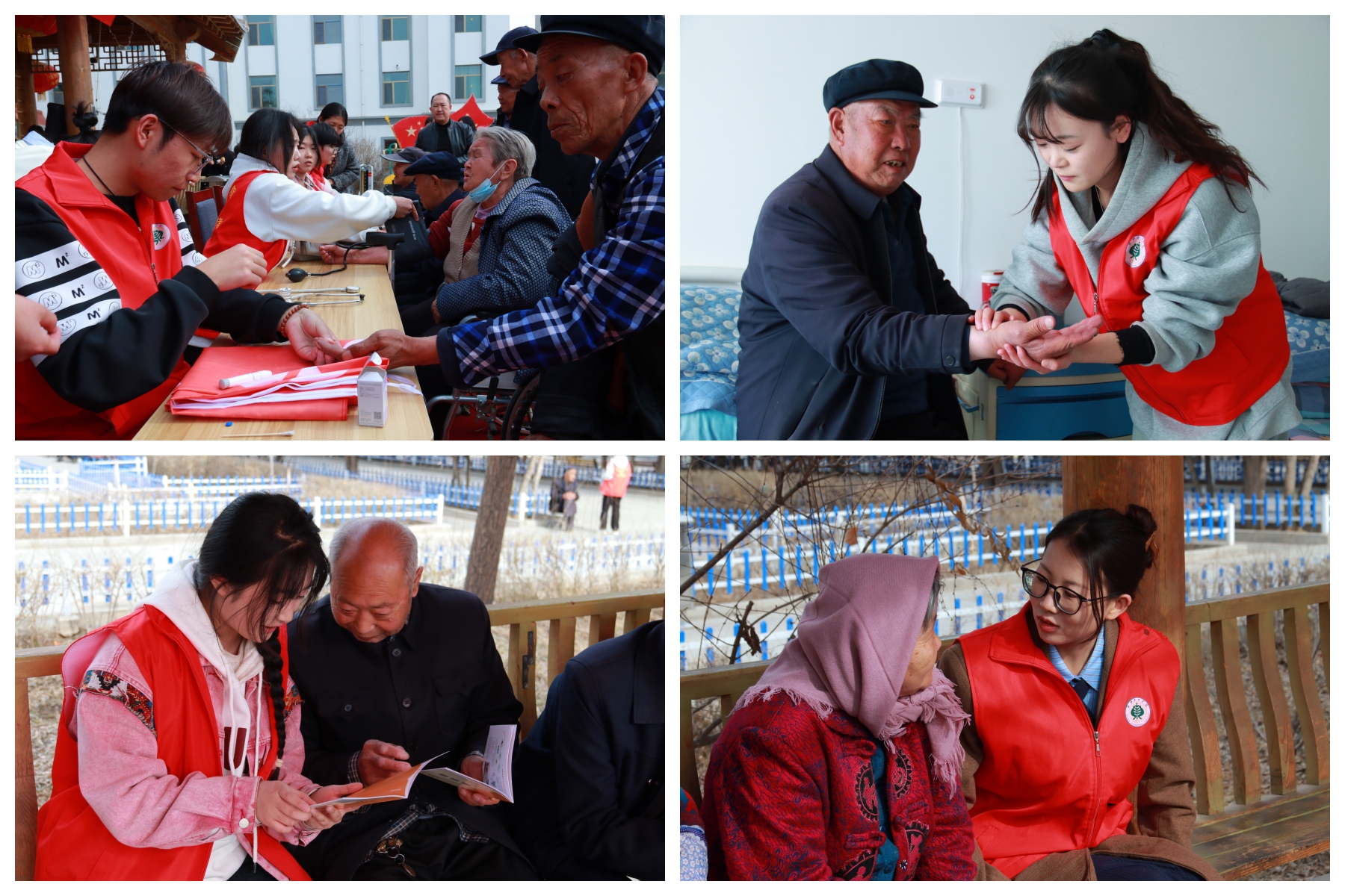 在健康慰問(wèn)環(huán)節(jié),護(hù)理學(xué)院志愿者結(jié)合專業(yè)特色,分組為老人測(cè)量血壓、血糖,并耐心給老人講解養(yǎng)生知識(shí),告知在日常生活起居中的注意事項(xiàng),以專業(yè)技能守護(hù)老人健康。