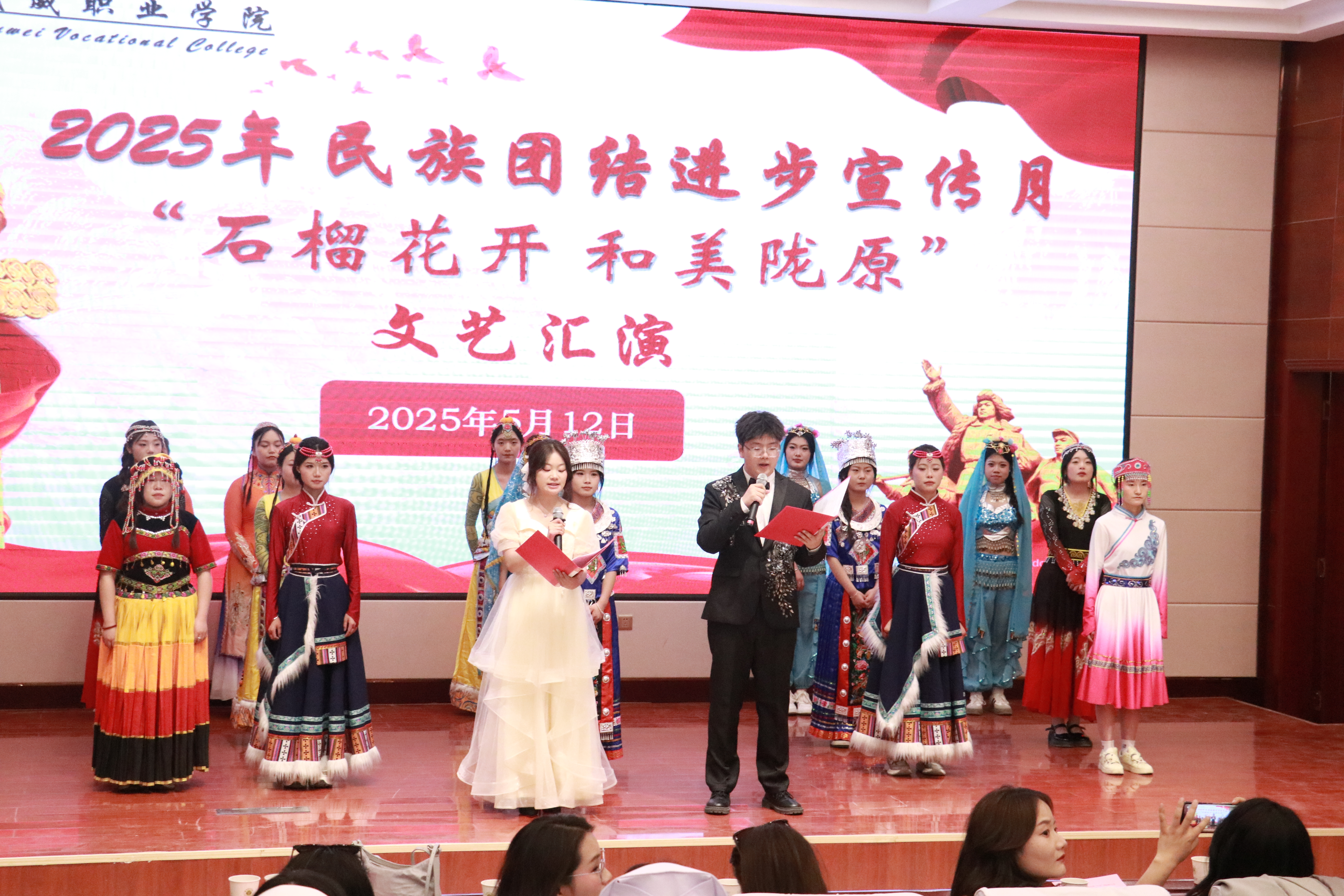 為深入貫徹落實黨的二十大精神,深化民族團結(jié)進步教育,鑄牢中華民族共同體意識,5月12日,護理學院在學校菁英廳舉行2025年民族團結(jié)進步宣傳月“石榴花開,和美隴原”主題文藝匯演。學院黨總支書記黃文源、全體教職工和學生代表共200余人參加。