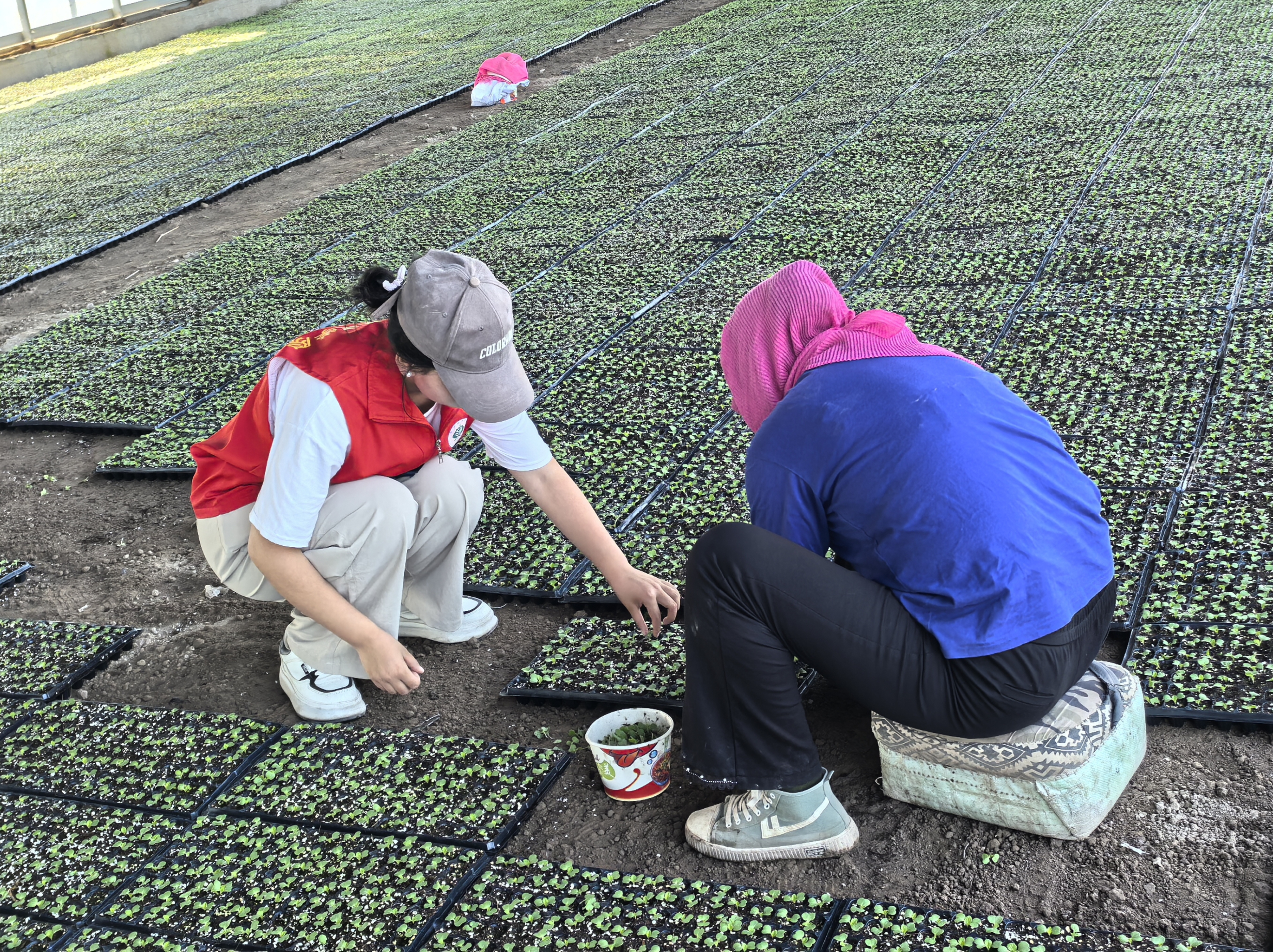 在涼州區(qū)雙城鎮(zhèn)徐信村,服務(wù)隊(duì)同步開(kāi)展農(nóng)業(yè)技術(shù)指導(dǎo)與健康環(huán)境調(diào)研。志愿者們深入田間地頭,實(shí)地操練娃娃菜集約化育苗、間苗及生物防治技術(shù),深度剖析農(nóng)藥使用痛點(diǎn)。同時(shí),走訪農(nóng)戶調(diào)研居住環(huán)境,分析露天垃圾與腸道傳染病的關(guān)聯(lián),提出環(huán)境健康綜合治理意見(jiàn)?!稗r(nóng)田+健康”雙線實(shí)踐模式,既提升了農(nóng)業(yè)生產(chǎn)安全性,又強(qiáng)化了健康環(huán)境干預(yù),生動(dòng)詮釋了“以農(nóng)促健、以健護(hù)農(nóng)”的深層聯(lián)動(dòng)機(jī)制。