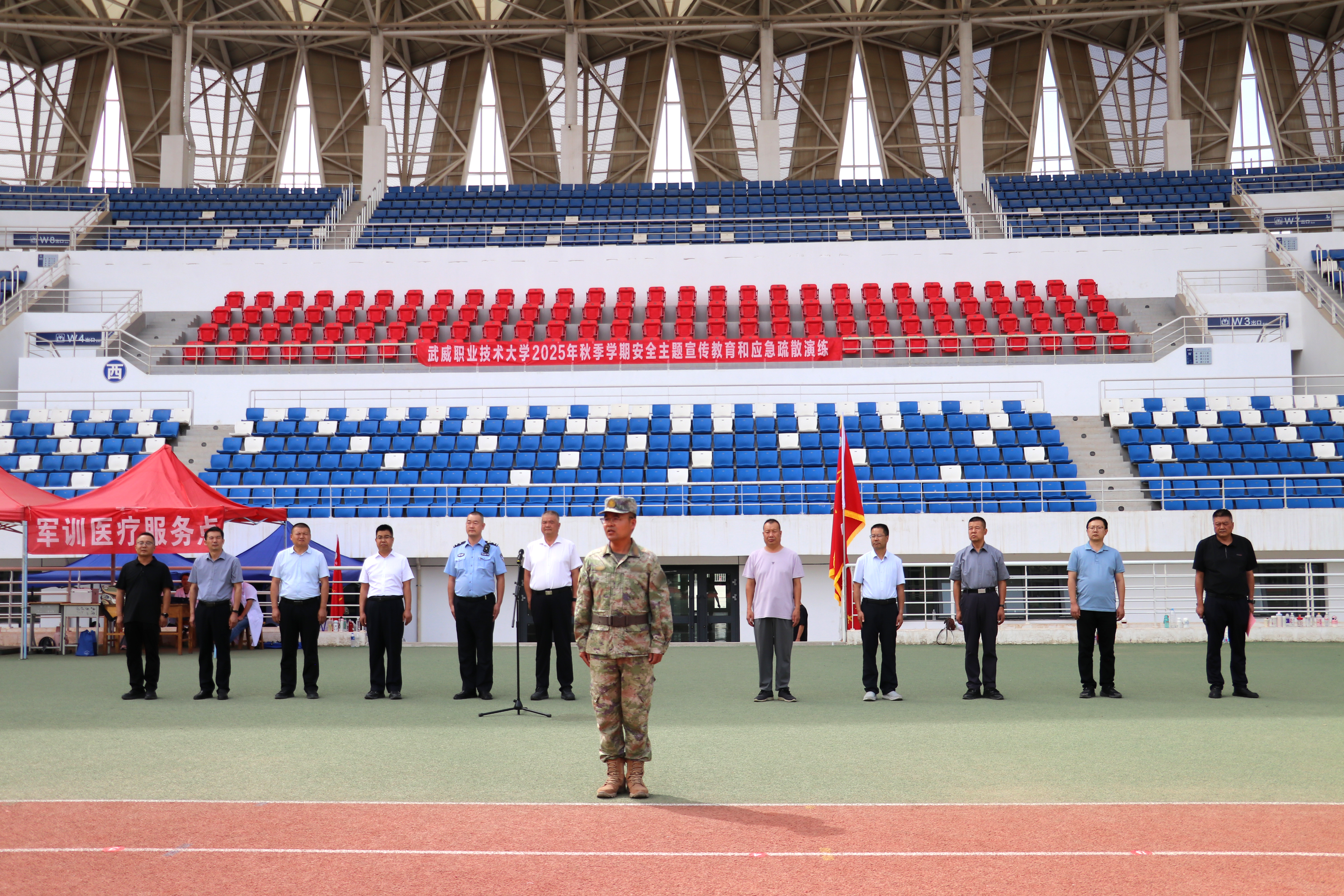 9月10日,學(xué)校舉行2025年秋季學(xué)期安全主題集中宣傳教育和應(yīng)急疏散暨滅火演練活動(dòng),學(xué)校新進(jìn)教師,食堂、鍋爐房、實(shí)驗(yàn)實(shí)訓(xùn)室等重點(diǎn)崗位管理人員,2025級(jí)全體學(xué)生共5000余人參加演練。學(xué)校黨委委員、副校長王守云,軍訓(xùn)教官,武威市公安局相關(guān)部門同志,各學(xué)院、各部門負(fù)責(zé)人現(xiàn)場觀摩演練。演練活動(dòng)由安全保衛(wèi)處處長李欣主持。