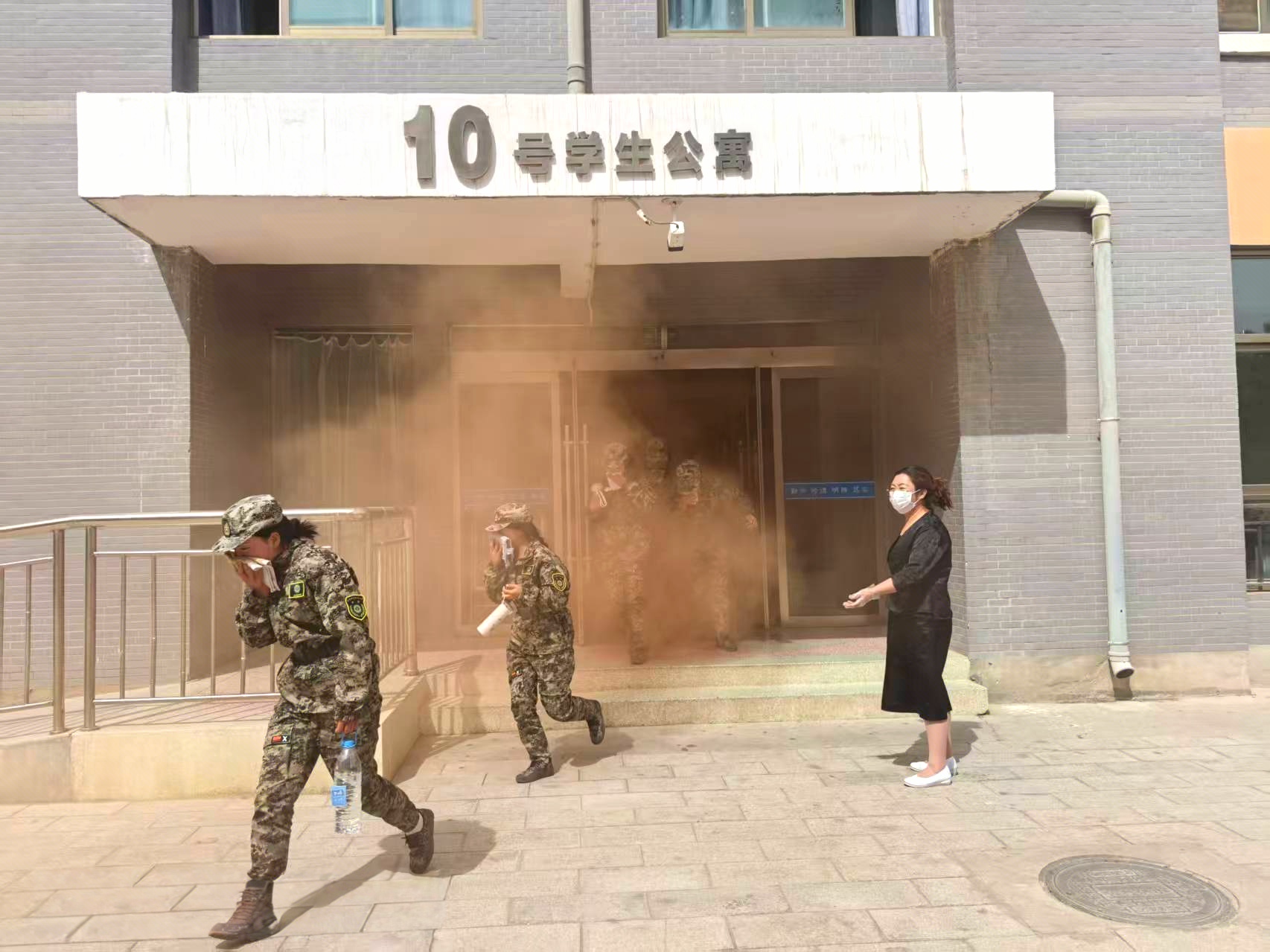 14時(shí)30分,疏散演練正式開始。隨著火災(zāi)警報(bào)響起,安全保衛(wèi)工作人員點(diǎn)燃煙餅,在學(xué)生公寓樓模擬火災(zāi)現(xiàn)場,冒出滾滾濃煙,公寓管理人員迅速組織學(xué)生有序疏散。在輔導(dǎo)員、班主任的引導(dǎo)下,同學(xué)們按照疏散要領(lǐng)和疏散路線,快速、有序地撤離至體育場。