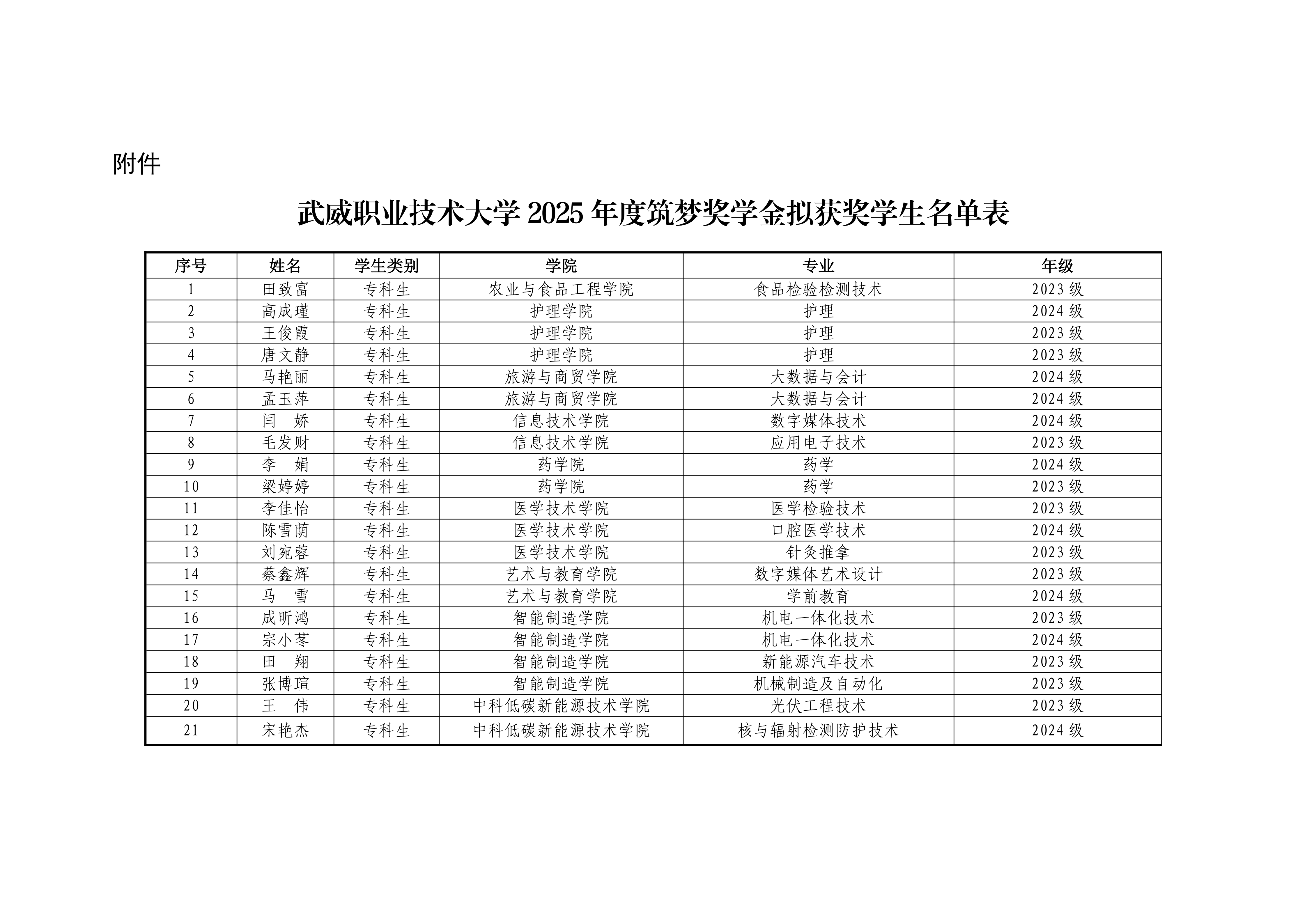 武威職業(yè)技術大學關于馮嘉俊等21名學生2025-202…