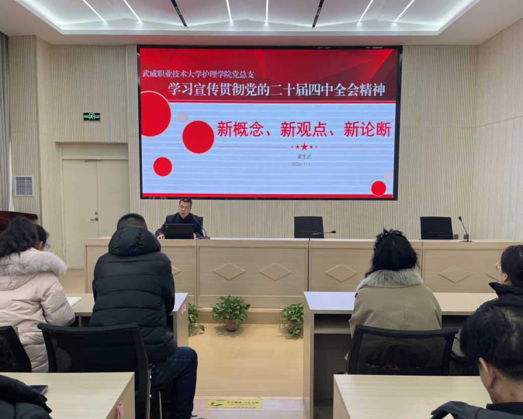 藺生武就二十屆四中全會公報中提出的一系列新概念、新觀點、新論斷,系統(tǒng)闡釋了黨的二十屆四中全會的重大意義與核心要義,回顧了“十四五”發(fā)展成就,重點闡述了“十五五”時期必須堅持黨的全面領(lǐng)導(dǎo)、人民至上、高質(zhì)量發(fā)展等六項原則。他結(jié)合學(xué)院實際,強調(diào)要以黨建引領(lǐng)發(fā)展、深化教學(xué)改革、加強師資與學(xué)科建設(shè)、對接“健康中國”戰(zhàn)略、優(yōu)化人才培養(yǎng),同時筑牢安全防線,統(tǒng)籌做好學(xué)院發(fā)展與安全工作,推動學(xué)院高質(zhì)量內(nèi)涵式發(fā)展。