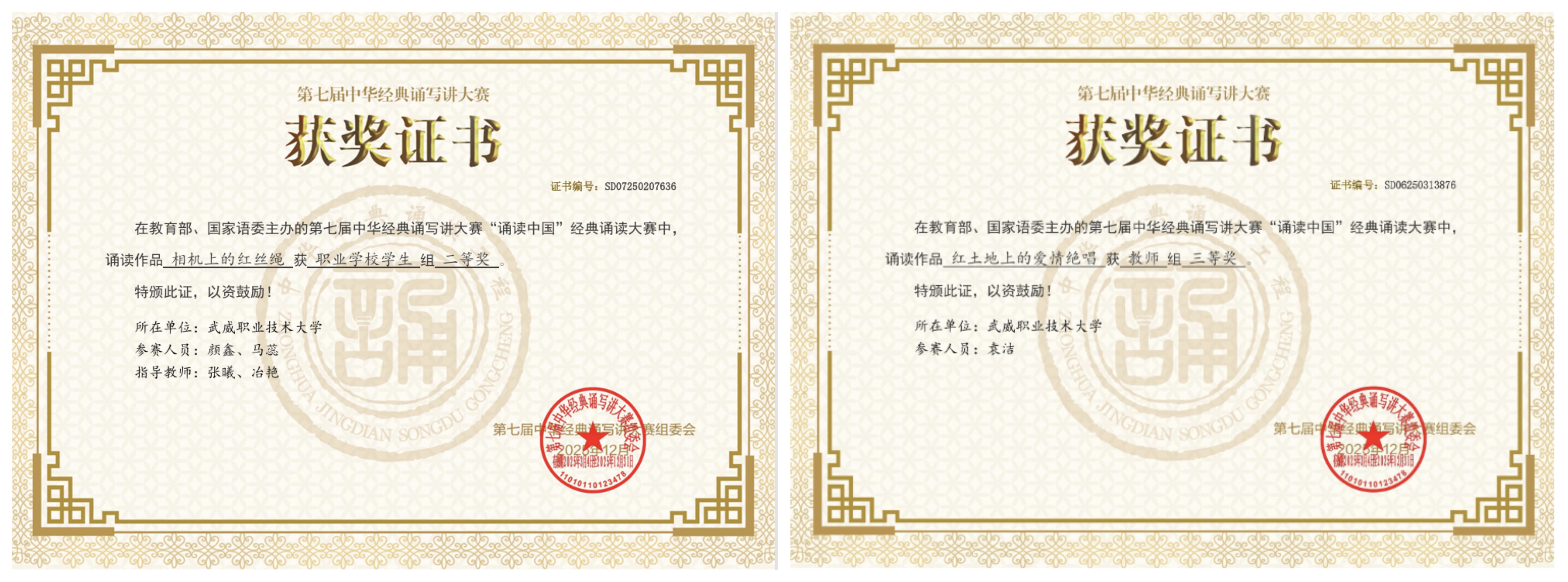 近日,由教育部、國家語委主辦的全國第七屆中華經(jīng)典誦寫講大賽落下帷幕。學(xué)校師生組成的參賽隊(duì)伍在“誦讀中國”賽項(xiàng)中,經(jīng)校級(jí)選拔、省級(jí)選拔、全國復(fù)賽、現(xiàn)場決賽等多輪嚴(yán)苛評(píng)審,憑借精湛的誦讀技藝與深厚的文化底蘊(yùn),在全國超兩千萬人次參與的激烈角逐中嶄露頭角,斬獲2個(gè)獎(jiǎng)項(xiàng),創(chuàng)下了歷史最佳成績,展現(xiàn)了學(xué)校文化育人的豐碩成果。