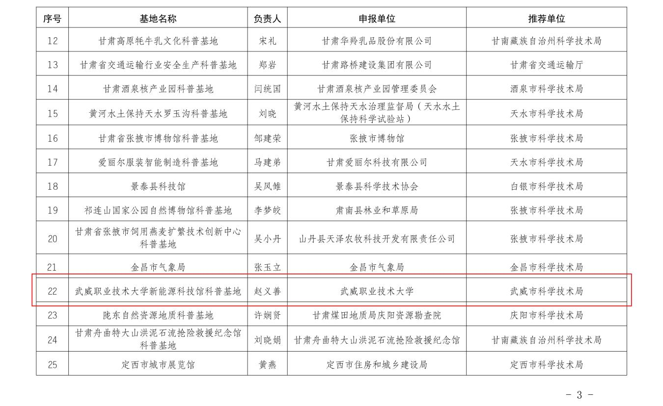 為深入貫徹國(guó)家創(chuàng)新驅(qū)動(dòng)發(fā)展戰(zhàn)略,服務(wù)“雙碳”目標(biāo),由武威職業(yè)技術(shù)大學(xué)中科低碳新能源技術(shù)學(xué)院作為主體單位申報(bào)、學(xué)校科技處積極引導(dǎo)和扶持科普能力建設(shè)的甘肅省“武威職業(yè)技術(shù)大學(xué)新能源科技館科普基地”成功獲批,標(biāo)志著我校在新能源科普教育、科研創(chuàng)新與社會(huì)服務(wù)方面邁上新臺(tái)階。