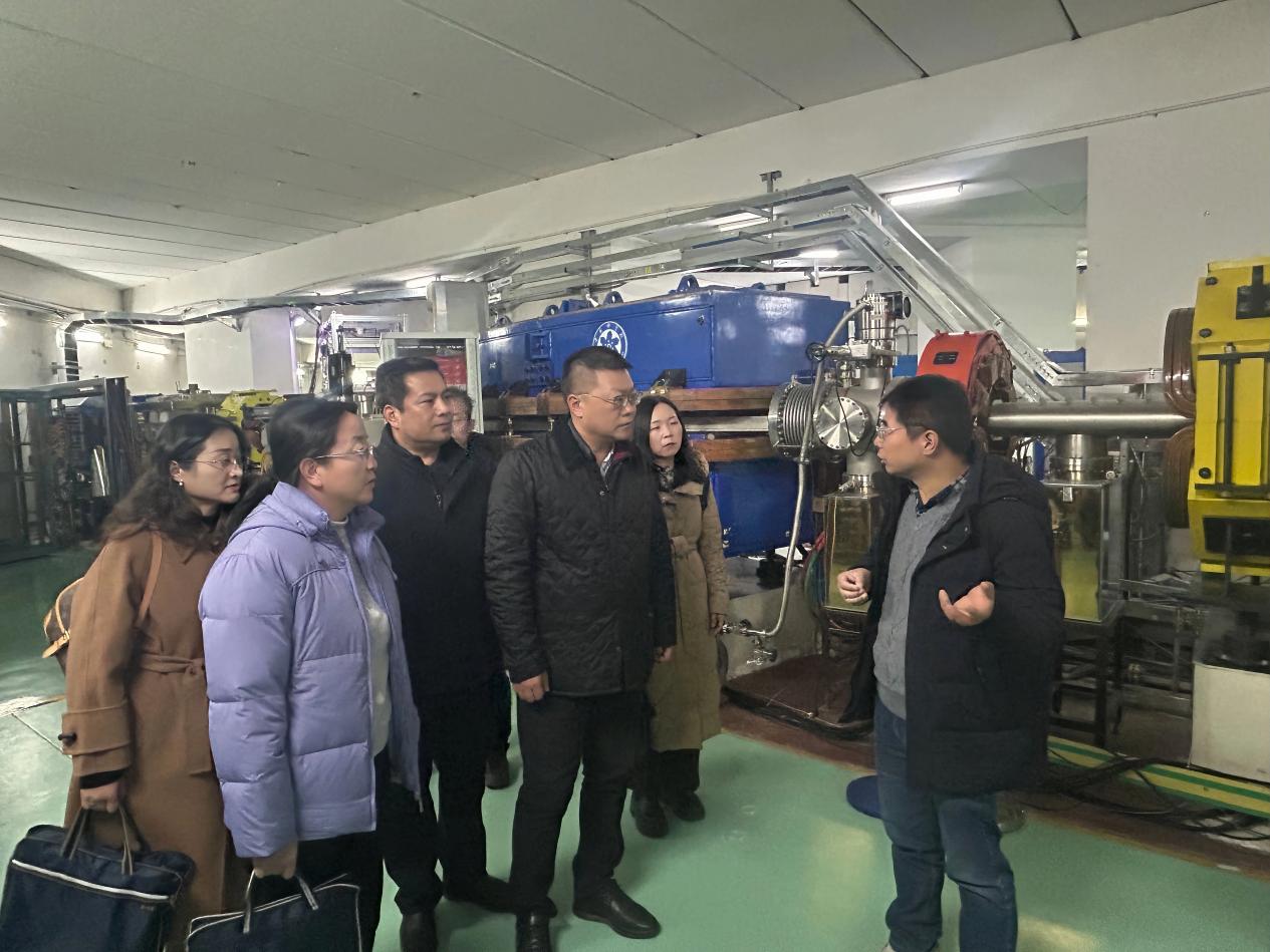 隨后,在醫(yī)用探測(cè)器室主任毛瑞士與副主任徐治國的陪同下,調(diào)研組實(shí)地參觀了“國之重器”——蘭州重離子加速器裝置,詳細(xì)了解了其結(jié)構(gòu)組成、運(yùn)行機(jī)制與核心技術(shù)原理。毛瑞士結(jié)合該裝置在重離子醫(yī)用探測(cè)器研發(fā)、醫(yī)用束測(cè)控制等領(lǐng)域的實(shí)際應(yīng)用,闡釋了核探測(cè)技術(shù)對(duì)提升醫(yī)學(xué)診療精度的支撐作用,使調(diào)研組成員切身感受到大科學(xué)裝置的科技魅力與實(shí)用價(jià)值。