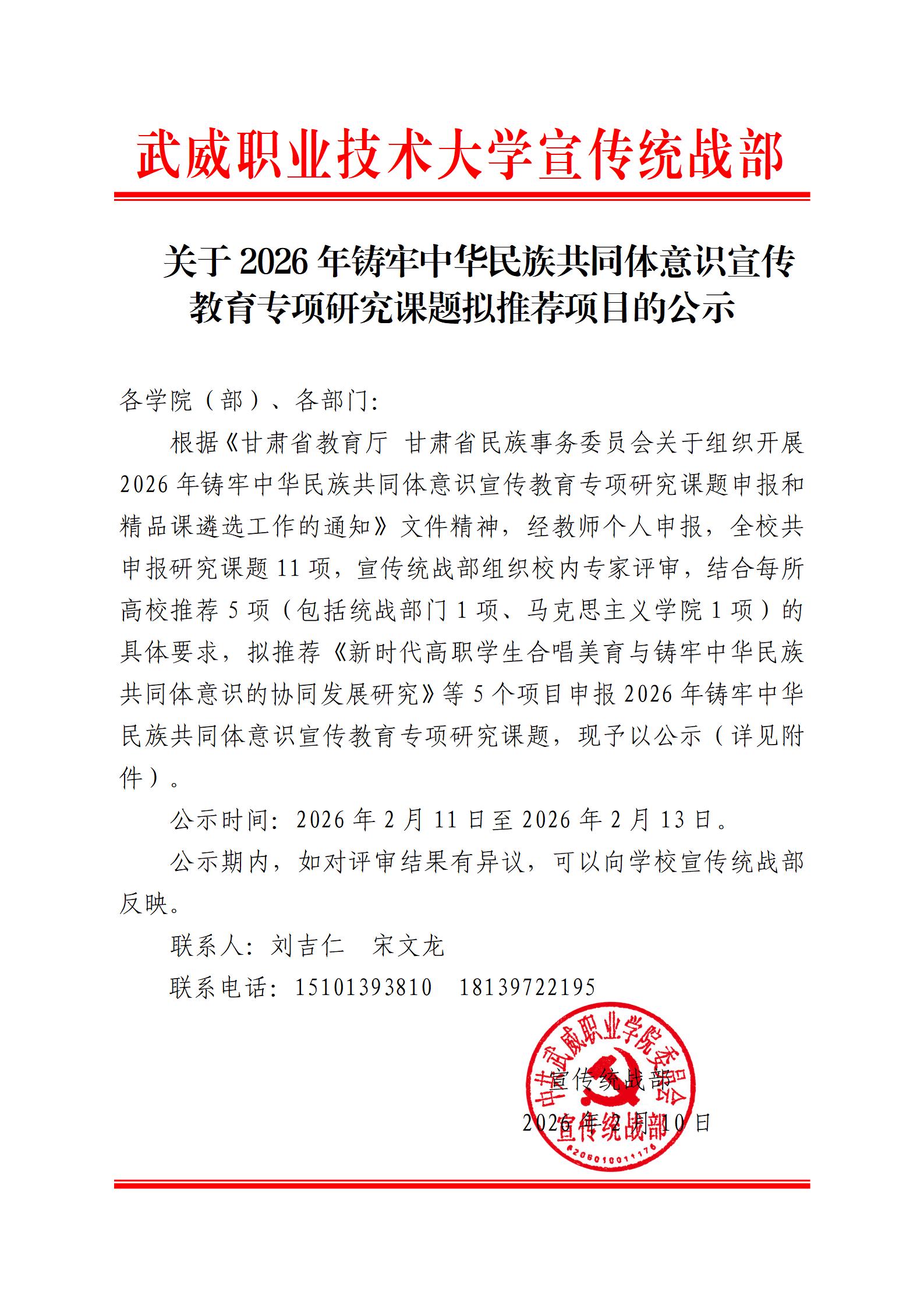 關(guān)于2026年鑄牢中華民族共同體意識(shí)宣傳教育專項(xiàng)研究課題擬推薦項(xiàng)目的公示