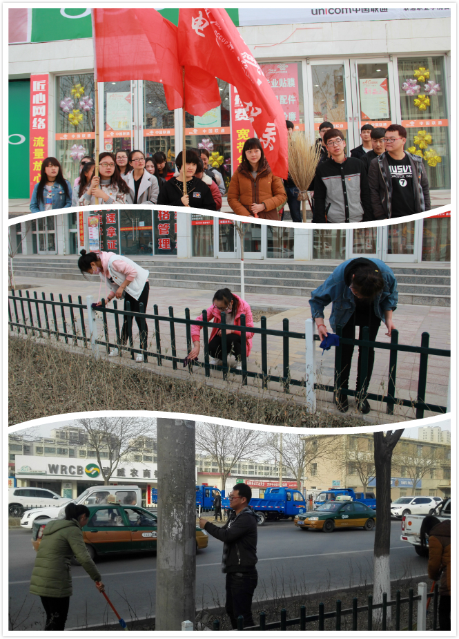 電子信息工程系團(tuán)總支結(jié)合團(tuán)市委、院團(tuán)委《關(guān)于開(kāi)展城鄉(xiāng)環(huán)境衛(wèi)生整治青年志愿服務(wù)活動(dòng)的通知》安排,3月3日下午16:30組織20名團(tuán)員青年在學(xué)院北門(mén)口道路兩側(cè)開(kāi)展了衛(wèi)生死角清掃,柵欄清潔,果皮箱清潔,公交站臺(tái)清潔,小廣告清理,垃圾清運(yùn)。學(xué)生志愿者盡己所能,服務(wù)社會(huì),傳播勞動(dòng)信念,為建設(shè)美好社會(huì)貢獻(xiàn)自己的一份微薄力量。