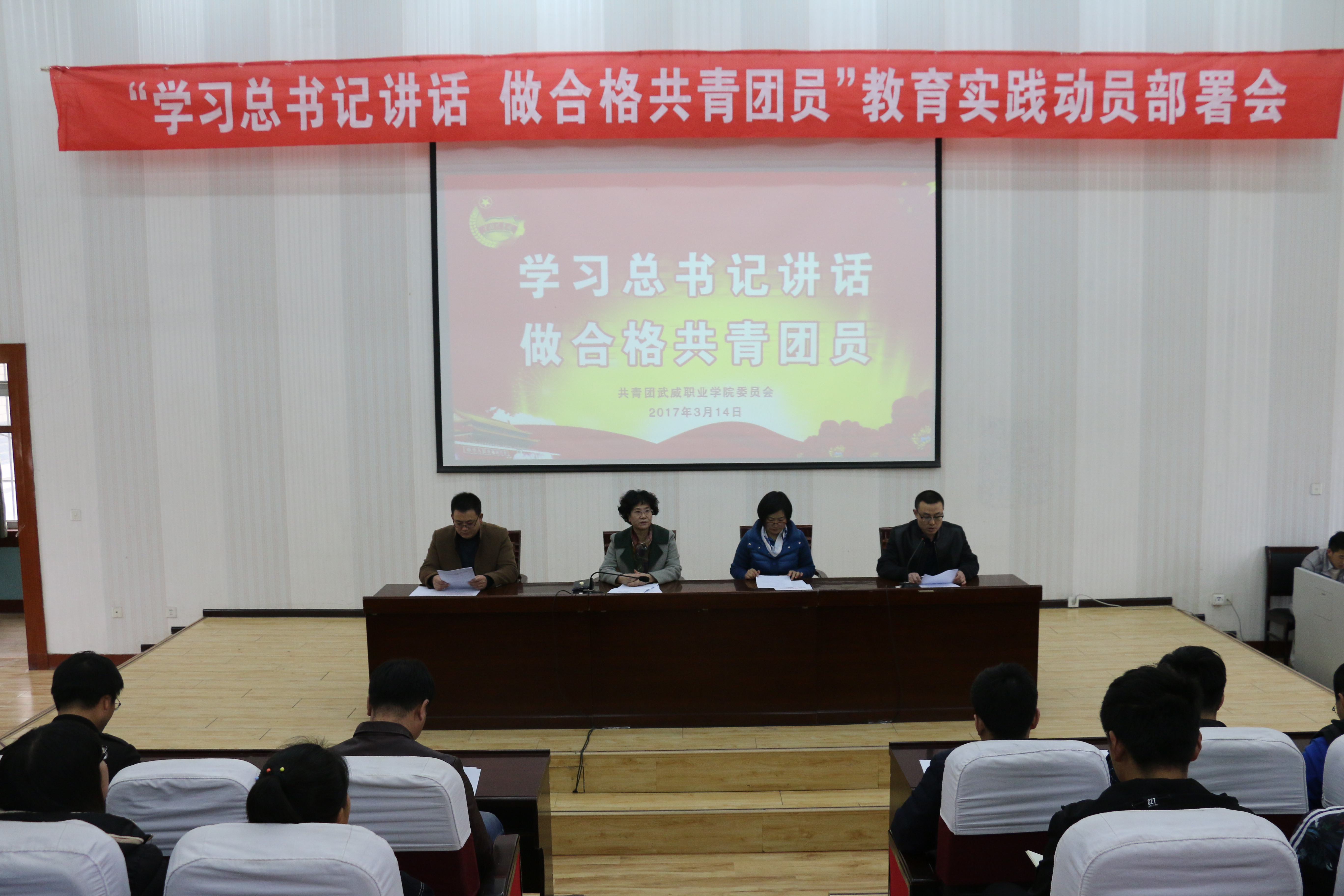 會議傳達了《共青團武威職業(yè)學(xué)院委員會2017年工作要點》、《關(guān)于學(xué)院共青團開展“學(xué)習(xí)總書記講話 做合格共青團員”教育實踐的通知》,并對“一學(xué)一做”教育實踐作了安排部署。