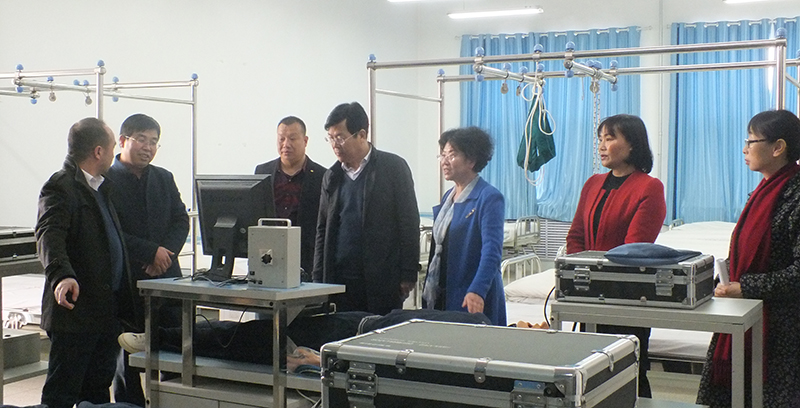 毛校長一行參觀了護理系的生命科技館、機能實訓室、基護實訓室、內(nèi)外科實訓室等醫(yī)學類實訓室,詳細了解了實驗設備的運行情況和實驗實訓課程的教學管理模式。潘玉華向來賓們介紹了學院申辦臨床醫(yī)學專業(yè)的進展,以及我院實訓課程建設和籌建實驗實訓室取得的成果。