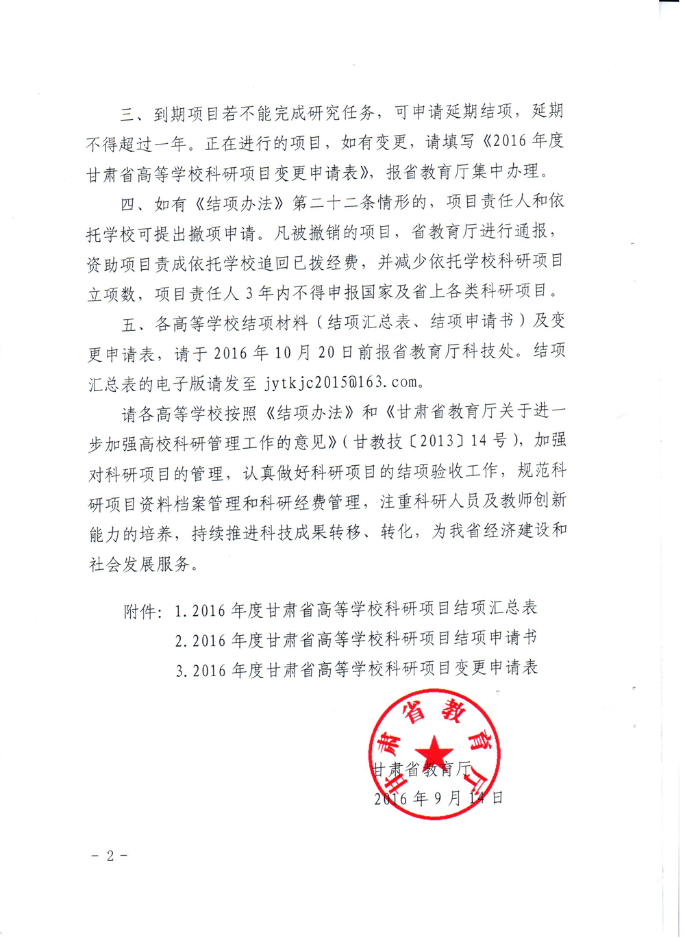 轉(zhuǎn)發(fā)甘肅省教育廳《關(guān)于2016年度甘肅省高等學(xué)??蒲许椖拷Y(jié)項的通知》