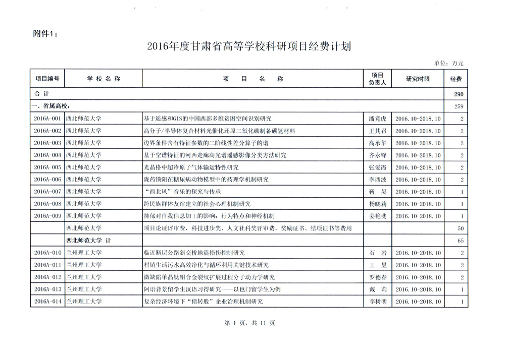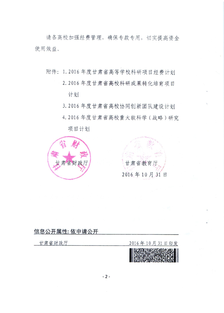 轉(zhuǎn)發(fā)甘肅省財(cái)政廳 教育廳文件 關(guān)于下達(dá)2016年度甘肅省高等學(xué)??蒲许?xiàng)目自…