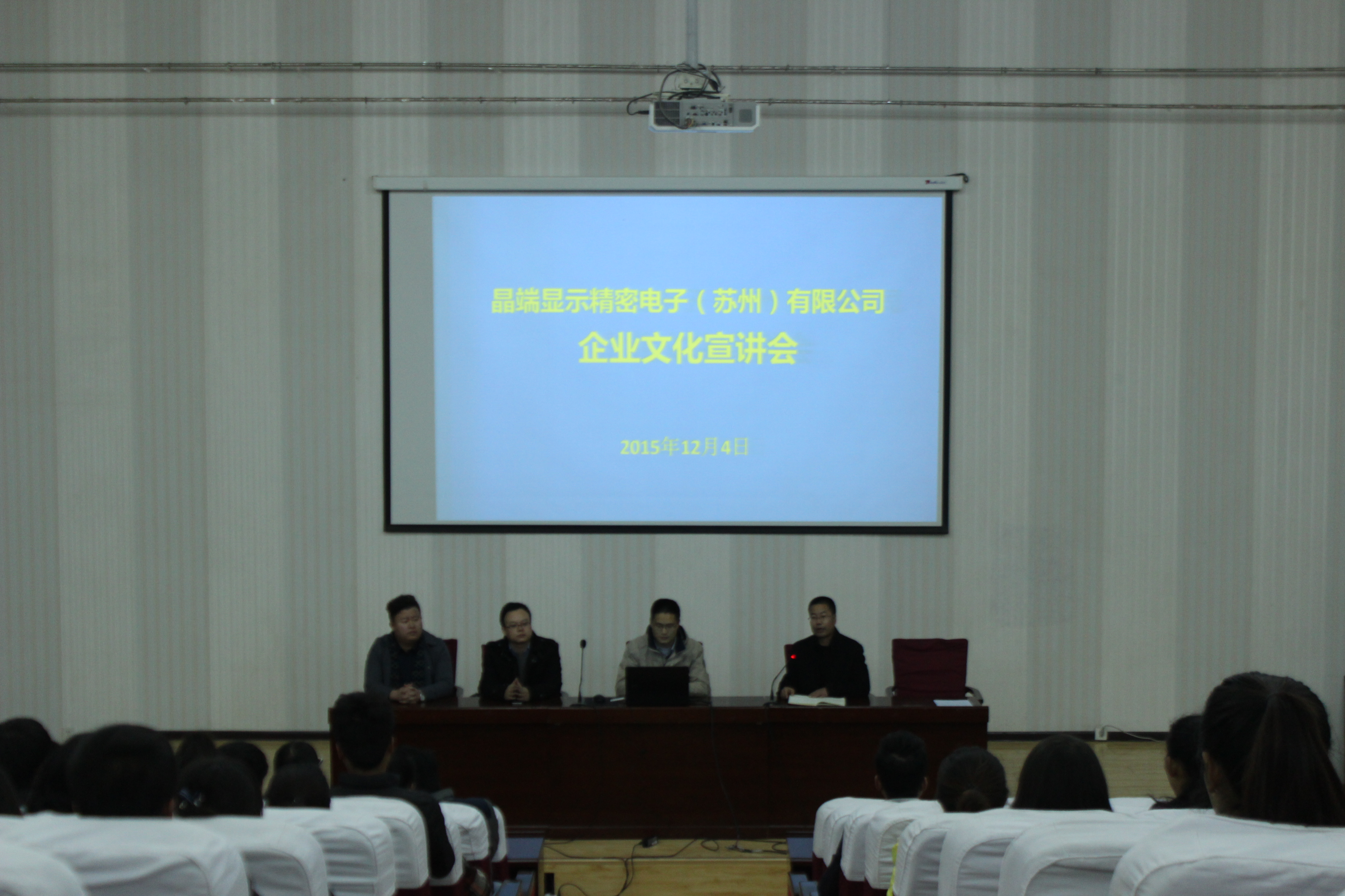 為切實做好2016屆畢業(yè)生就業(yè)工作,加強(qiáng)學(xué)院同用人單位的廣泛交流與合作,拓展就業(yè)渠道,培育就業(yè)市場,促使畢業(yè)班同學(xué)順利實習(xí)、就業(yè),12月4日下午4時,電子信息工程系在學(xué)院正德廳舉辦了用人單位宣講招聘會。本次活動邀請了學(xué)院校企合作理事單位晶端顯示精密電子(蘇州)有限公司參加,電子類專業(yè)學(xué)生180多人參加了本次宣講招聘會。