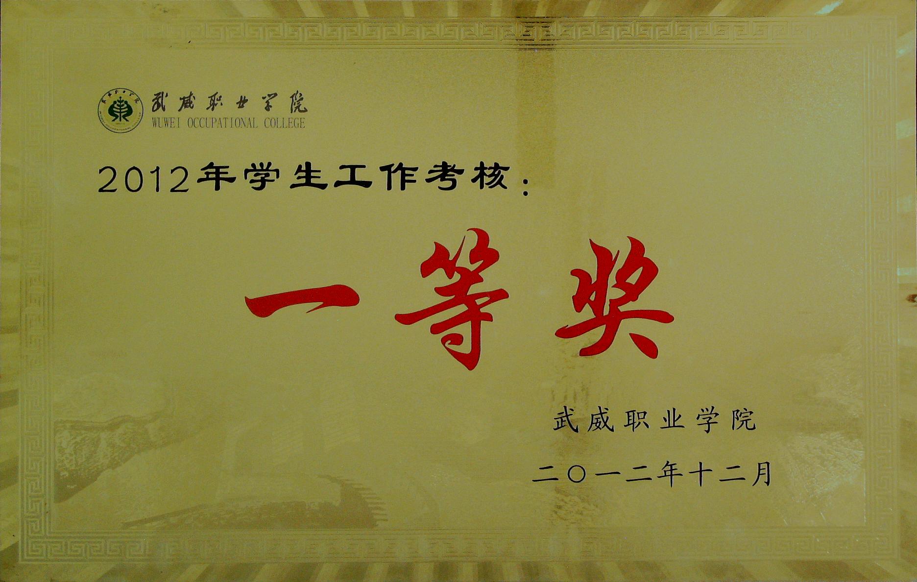2012年學(xué)生工作考核中一等獎